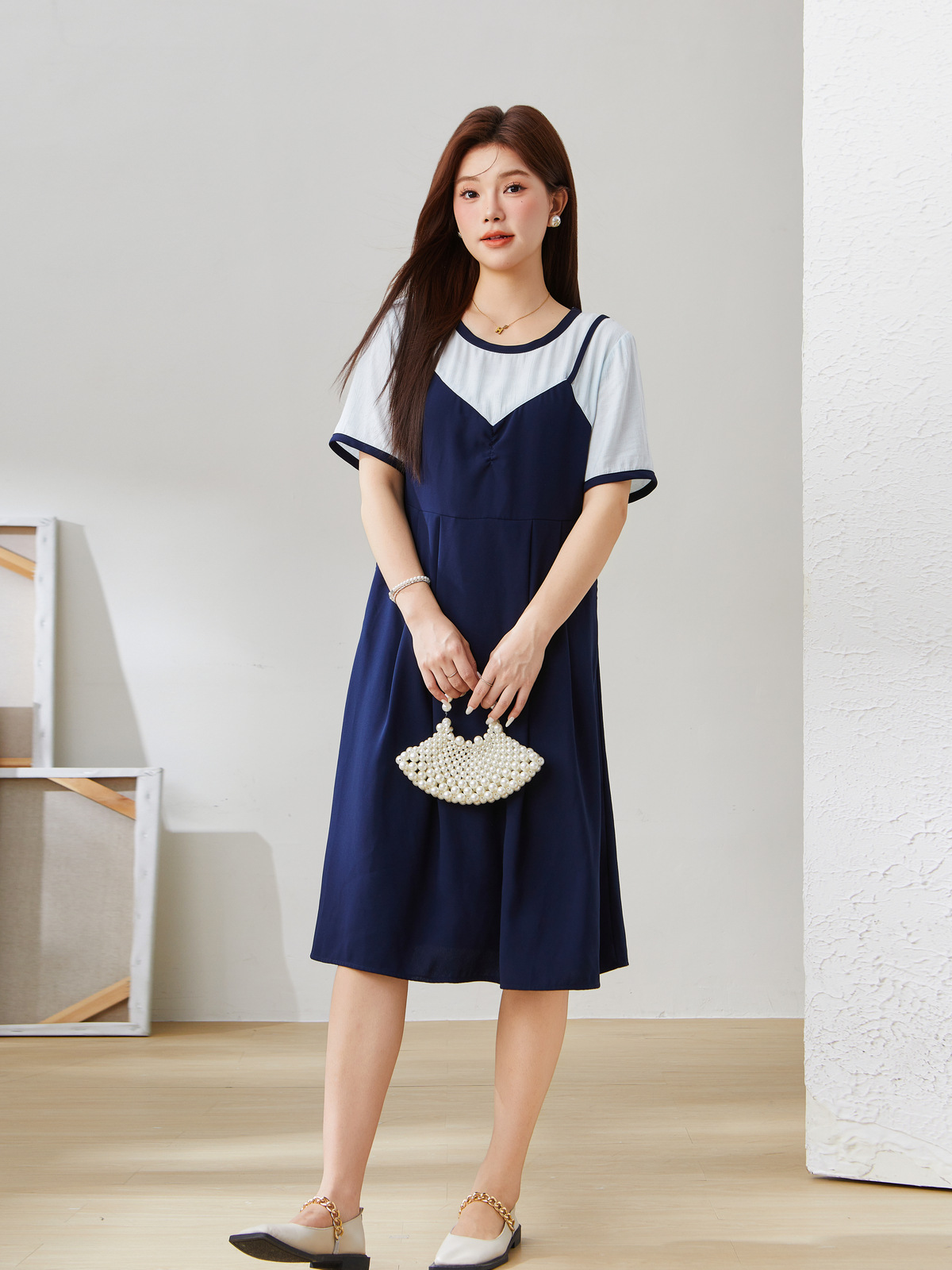 Fake Two-Piece Spliced Waist-Cinching Dress EXQ5507