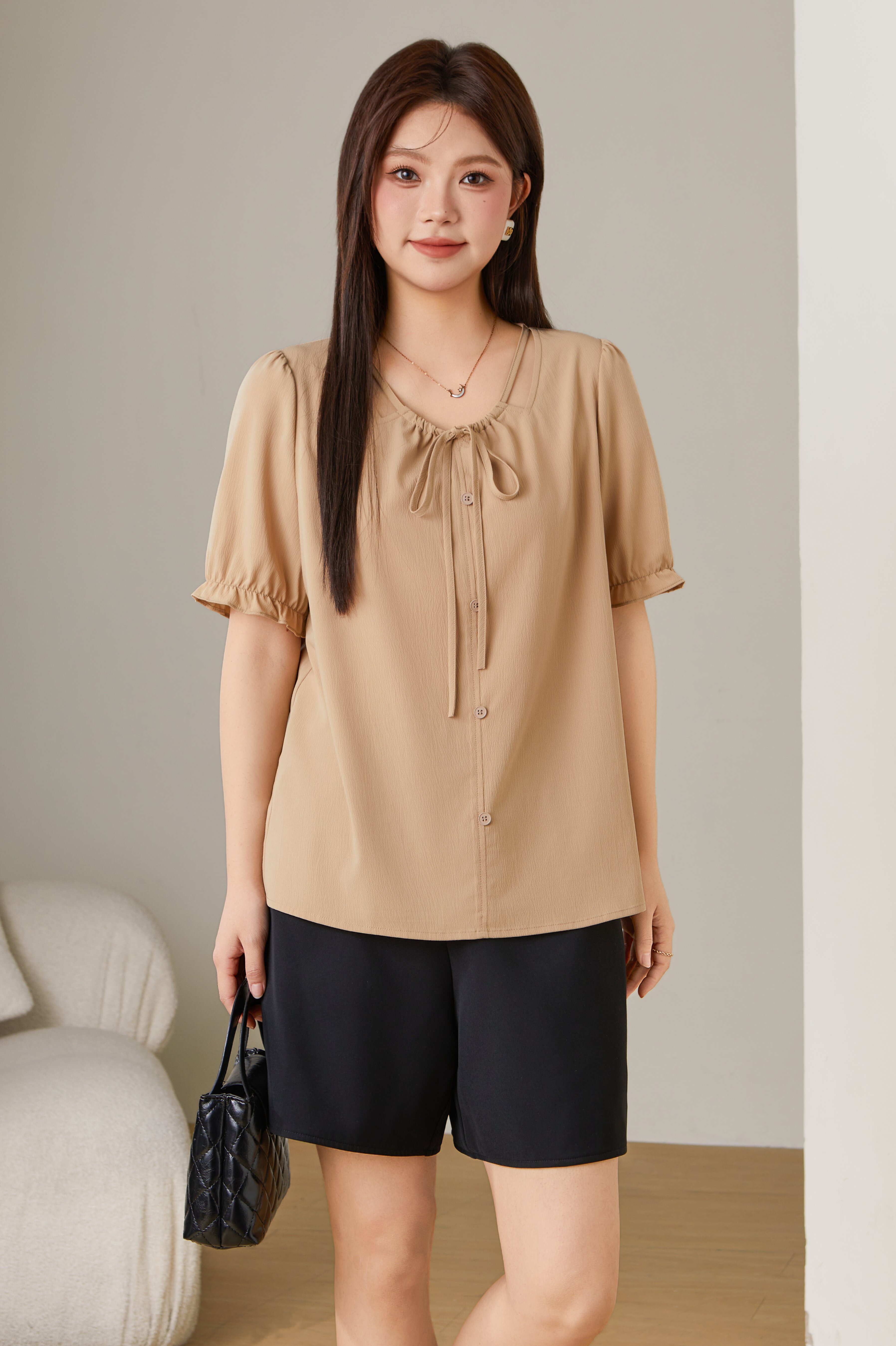Lace Trim Square Neck Puff Sleeve T-Shirt Top EXZ2931
