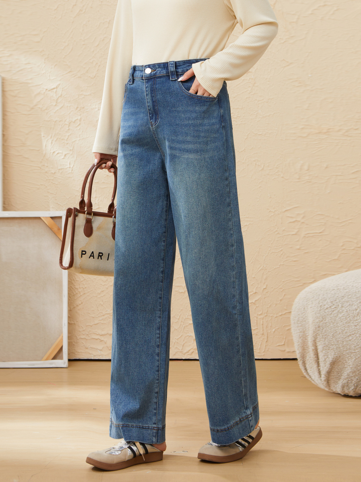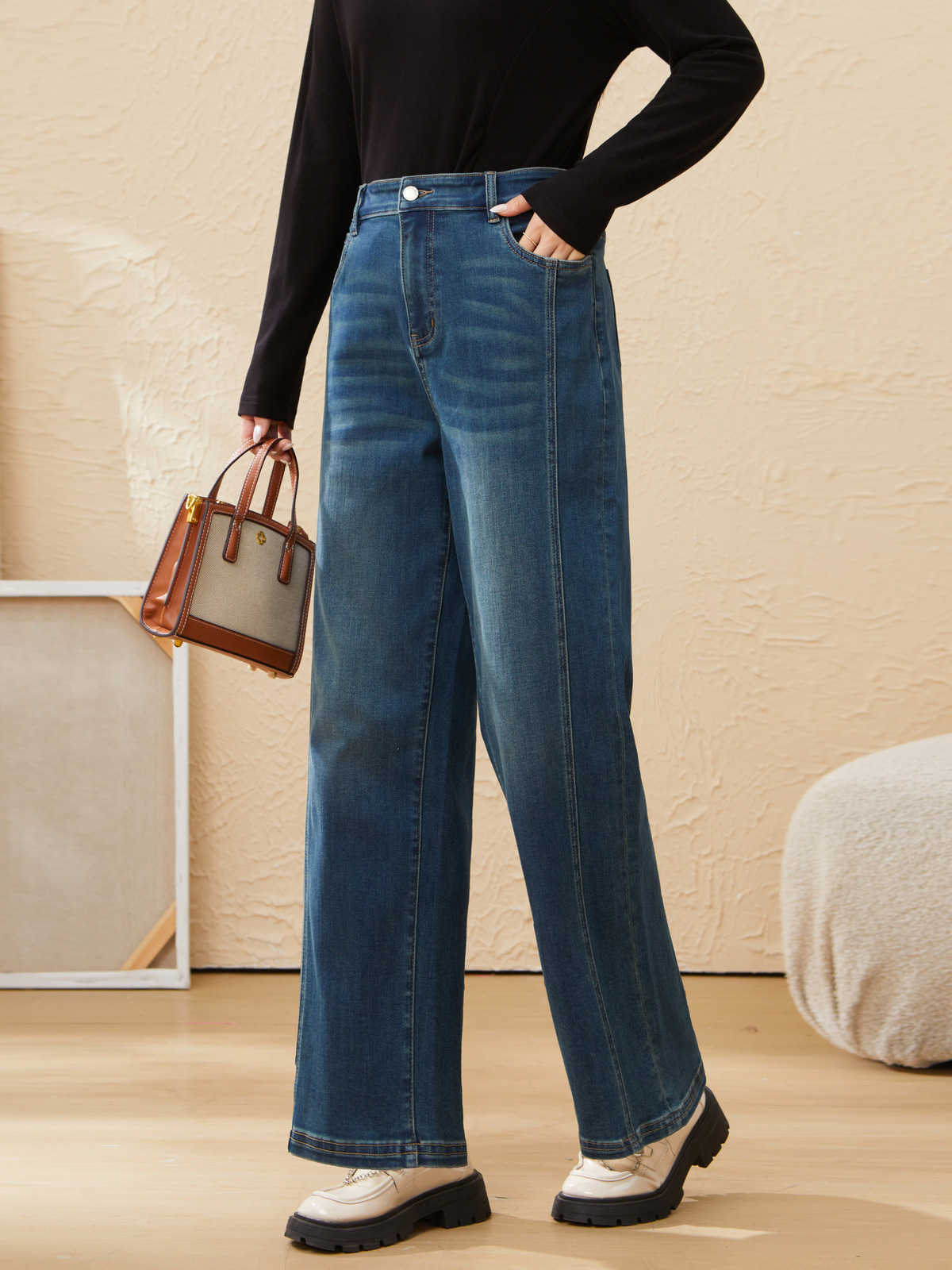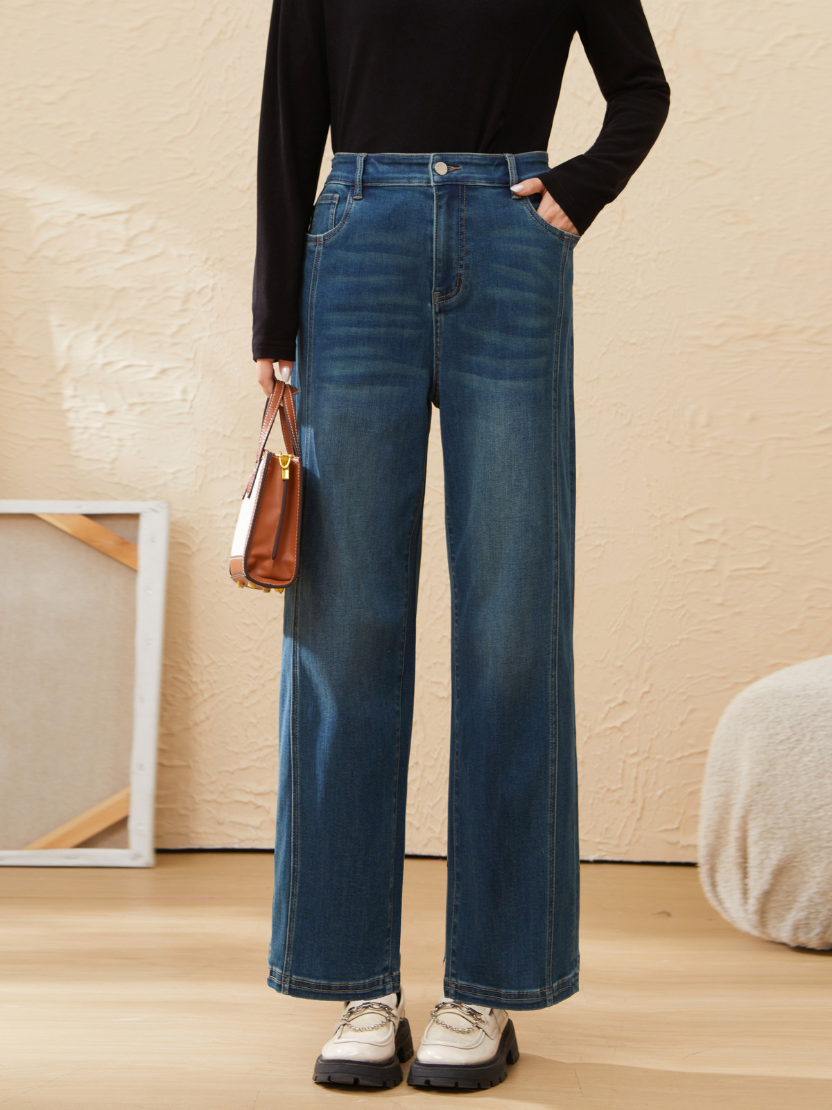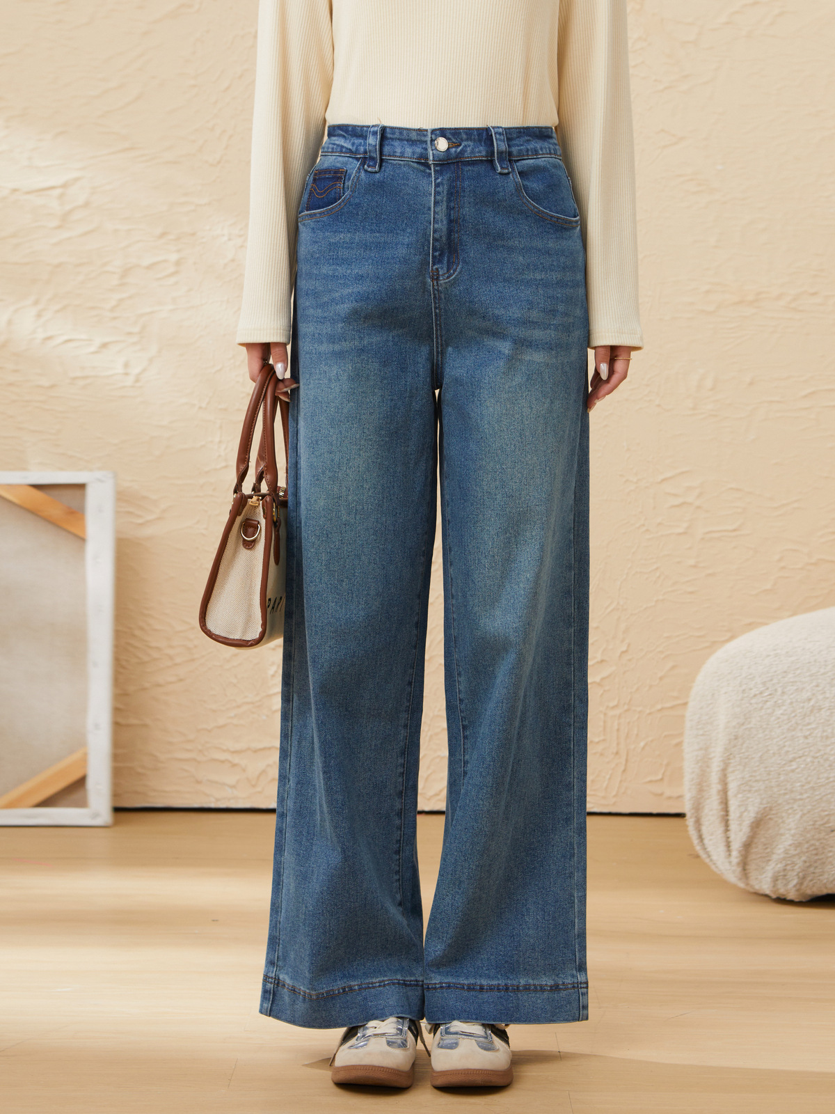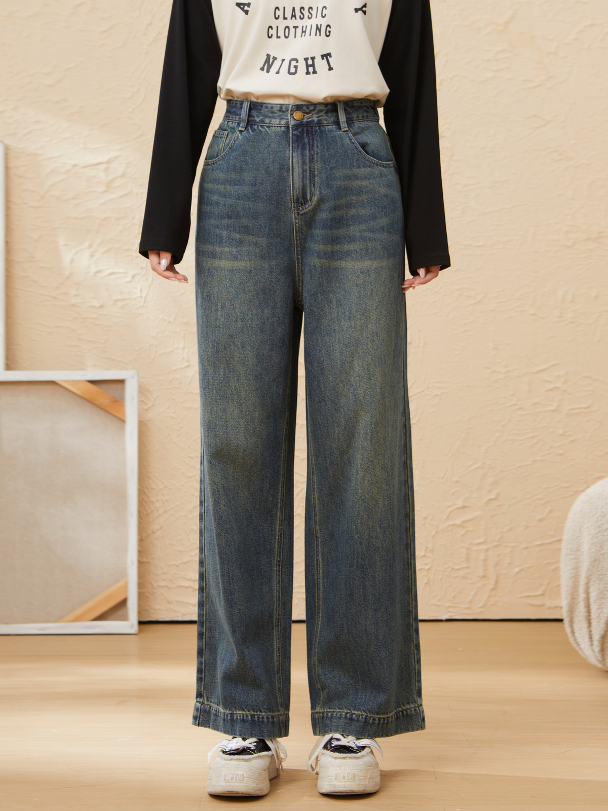 retro wide-leg straight-leg denim pants EDK5862