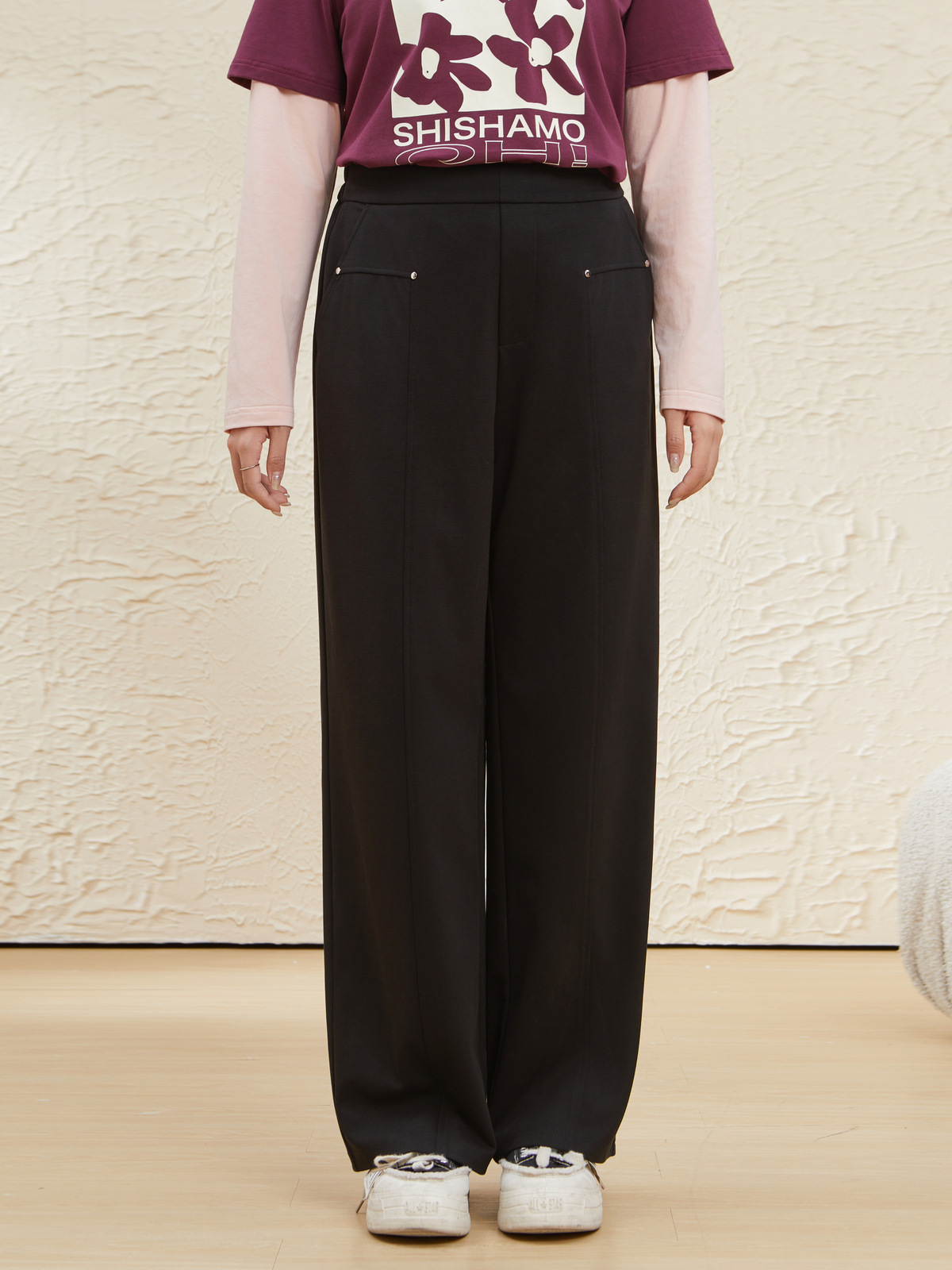 High Waist Hip-Covering Slightly Flared Casual Pants EDK5758