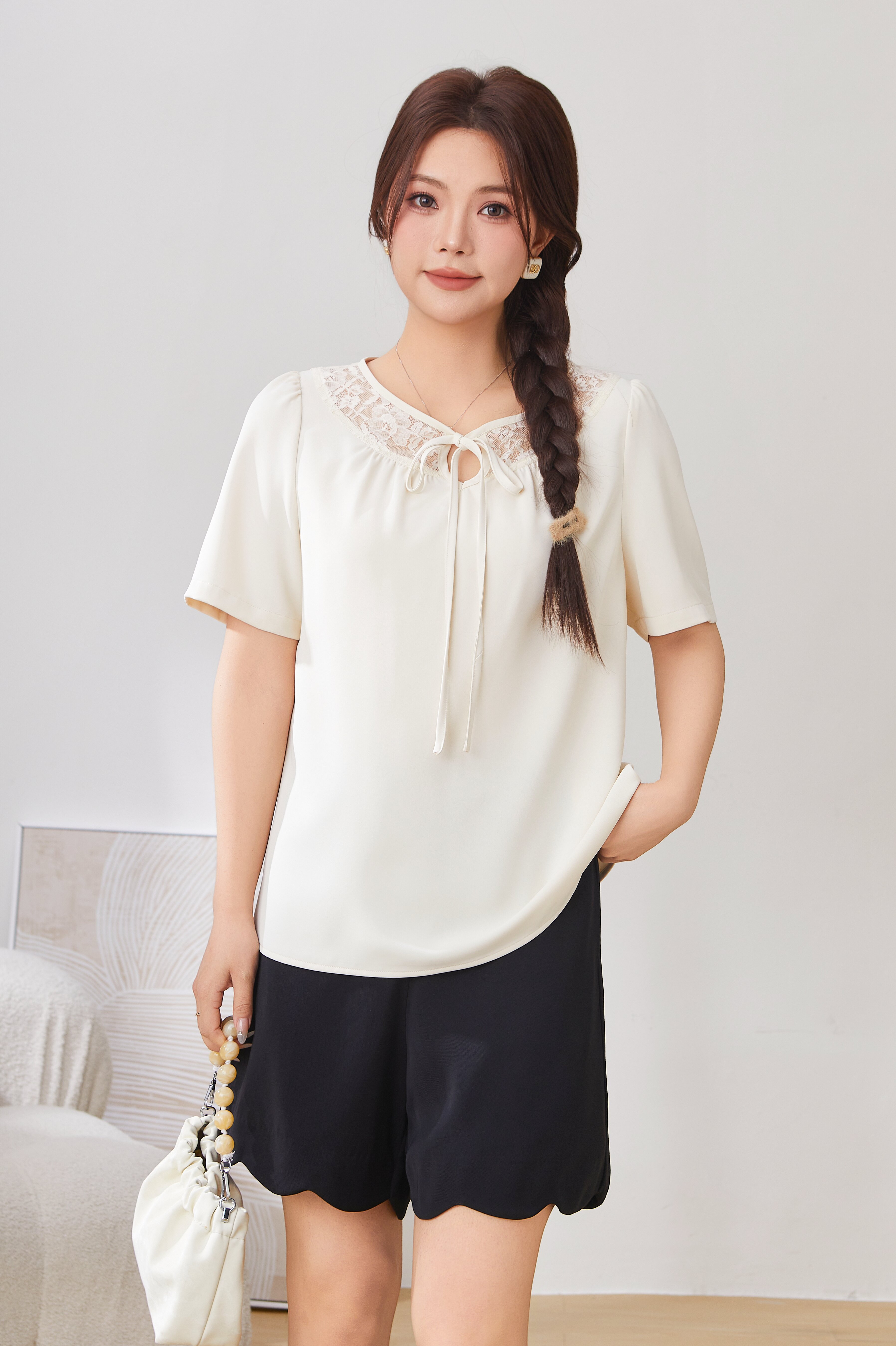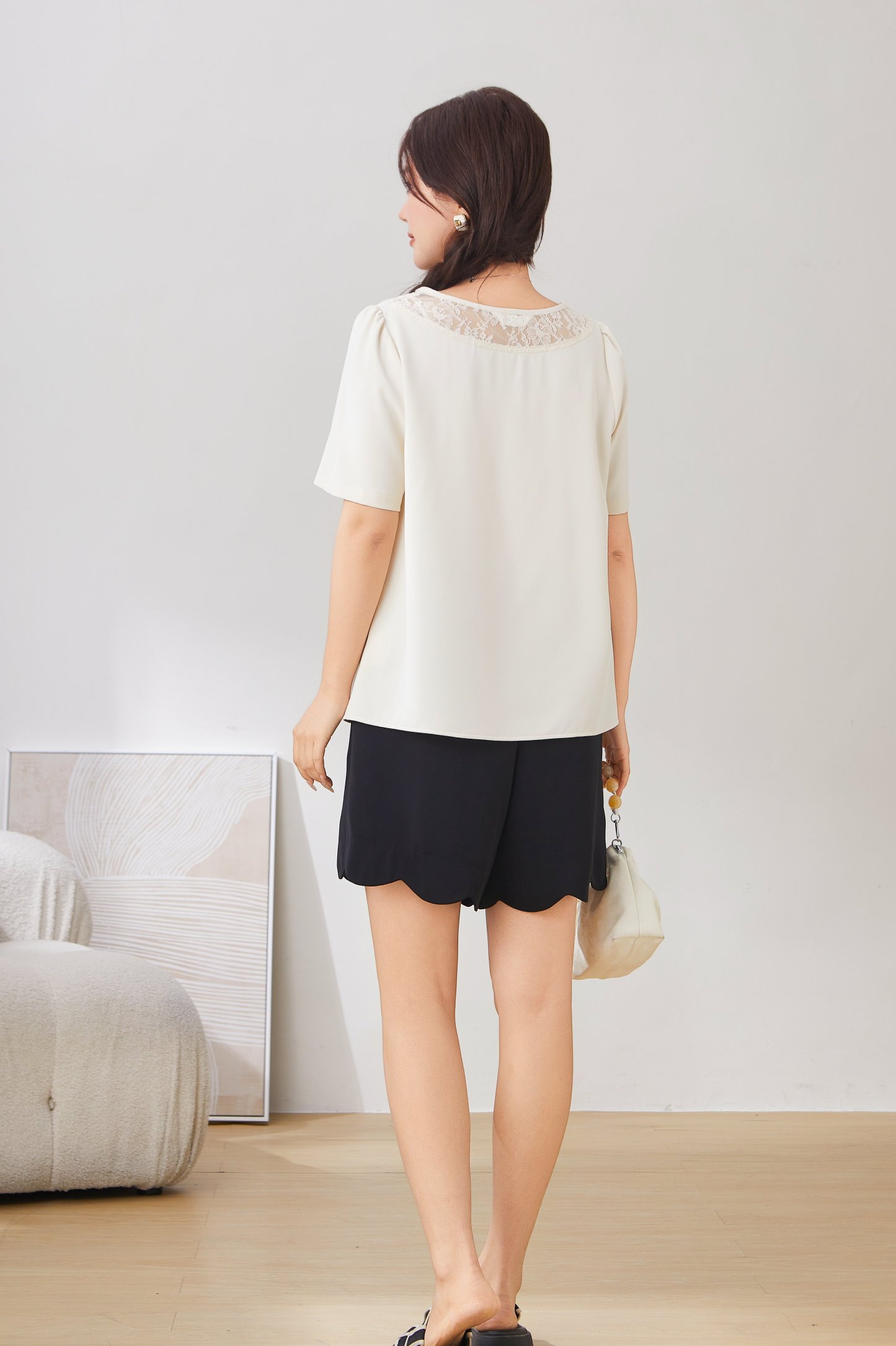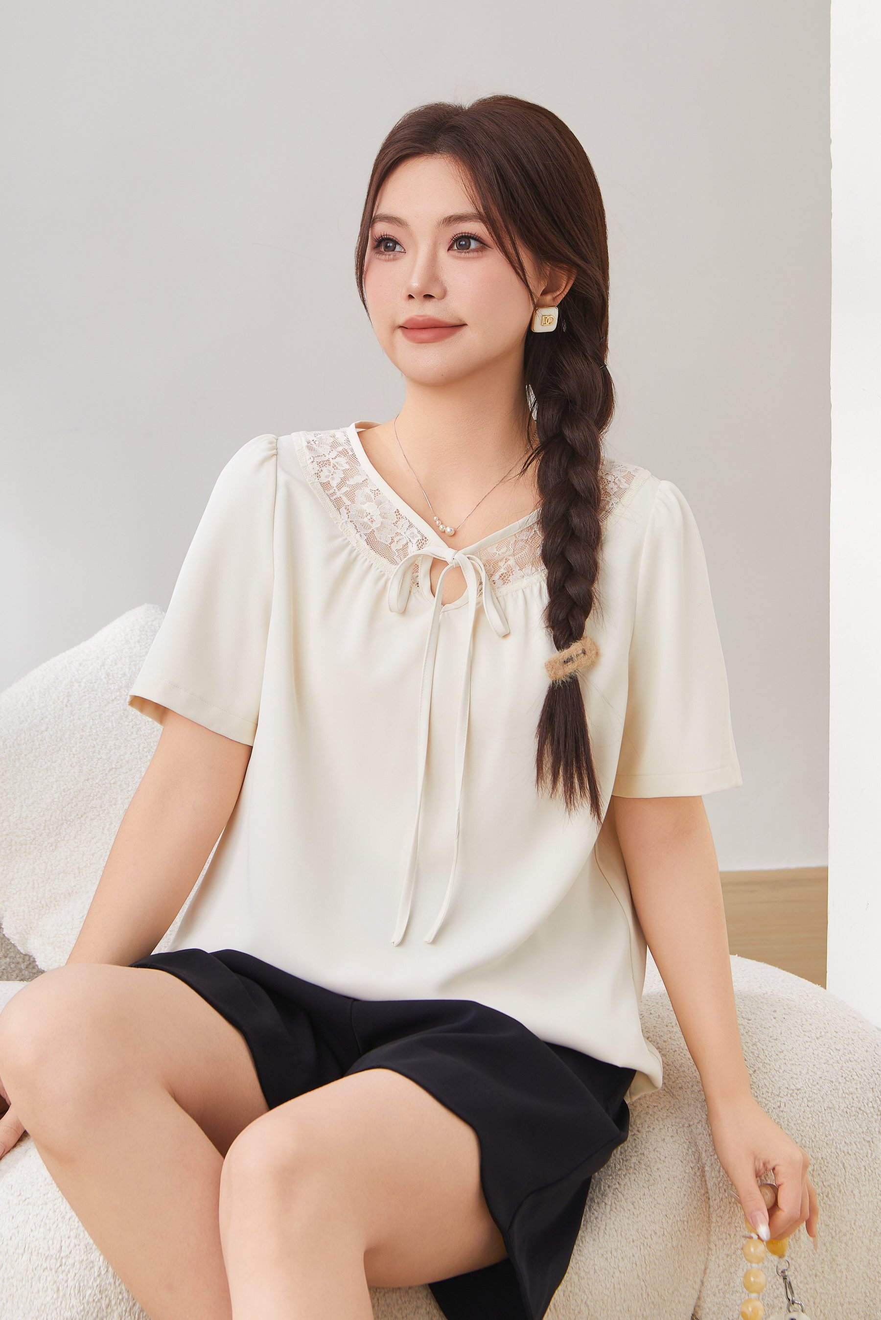 Puff Sleeve Lace Stitching Elegant Small Shirt Exa2685