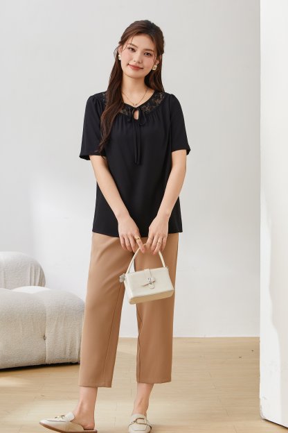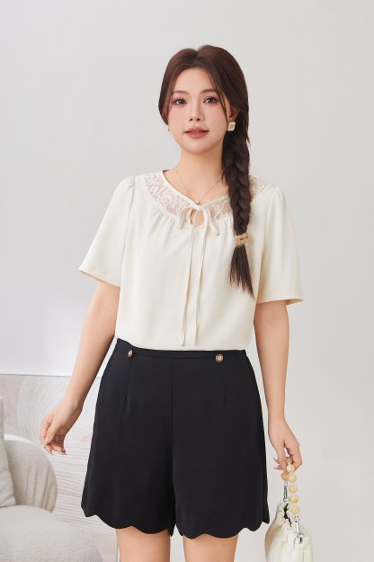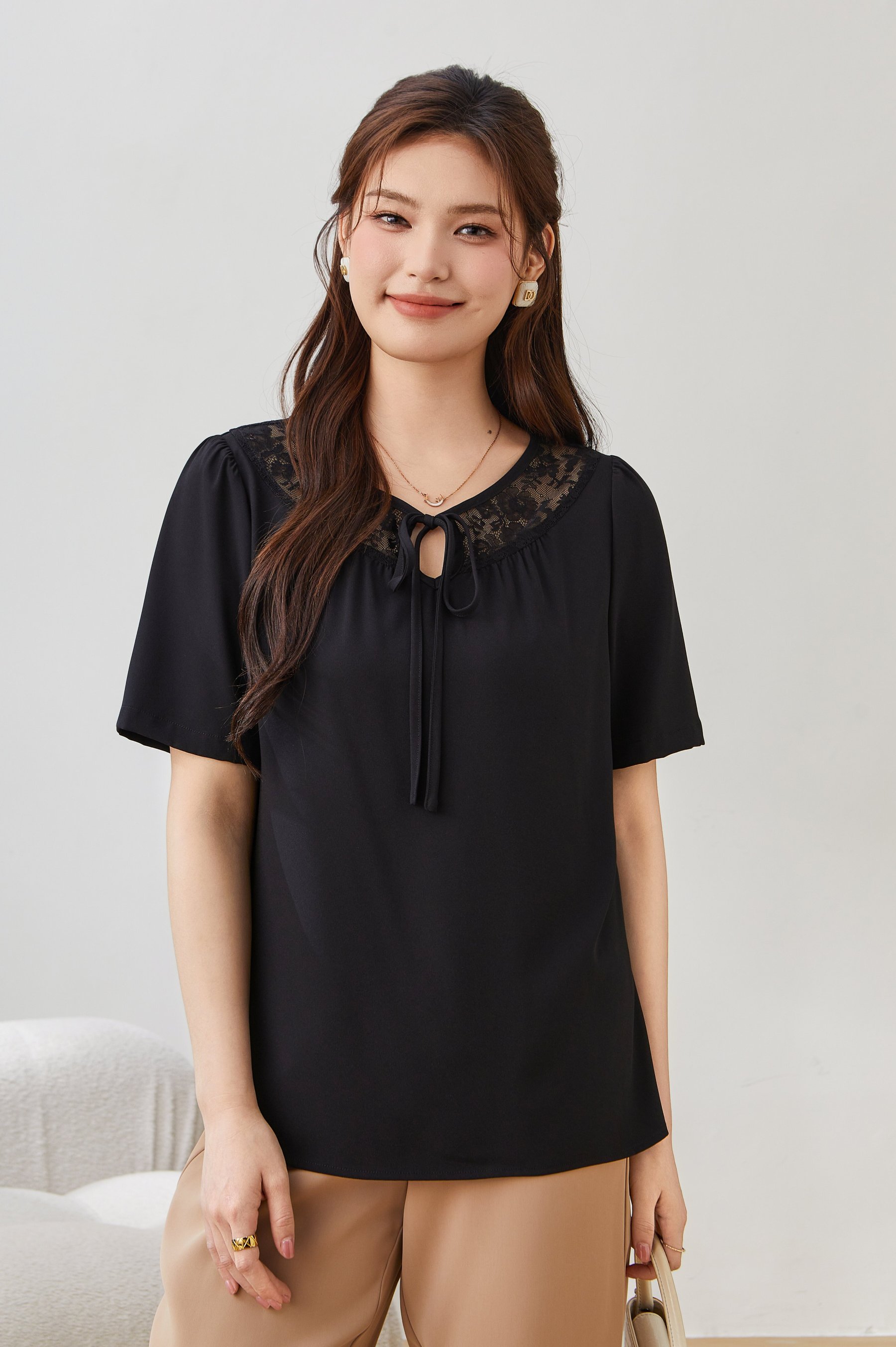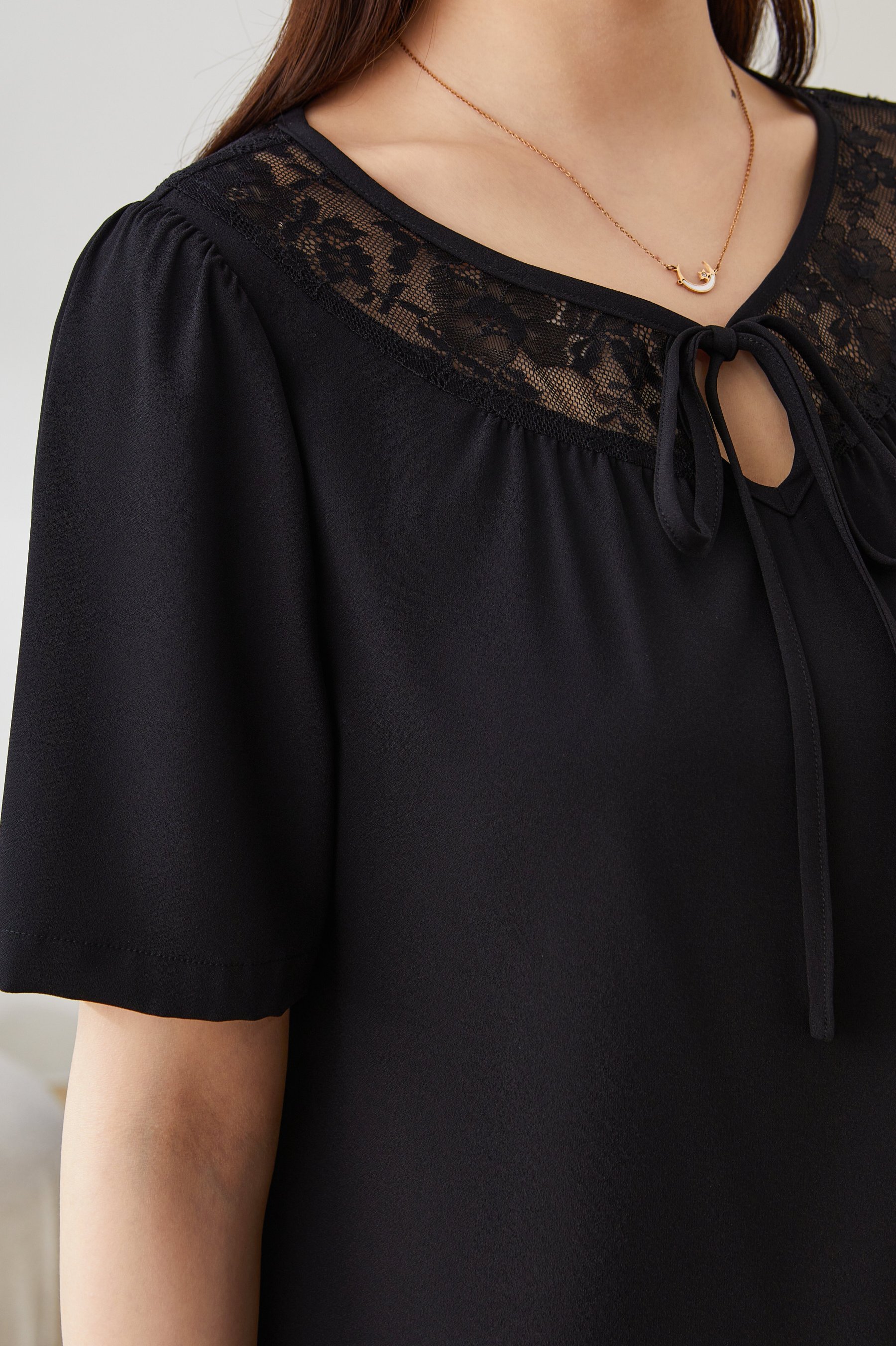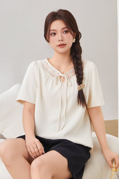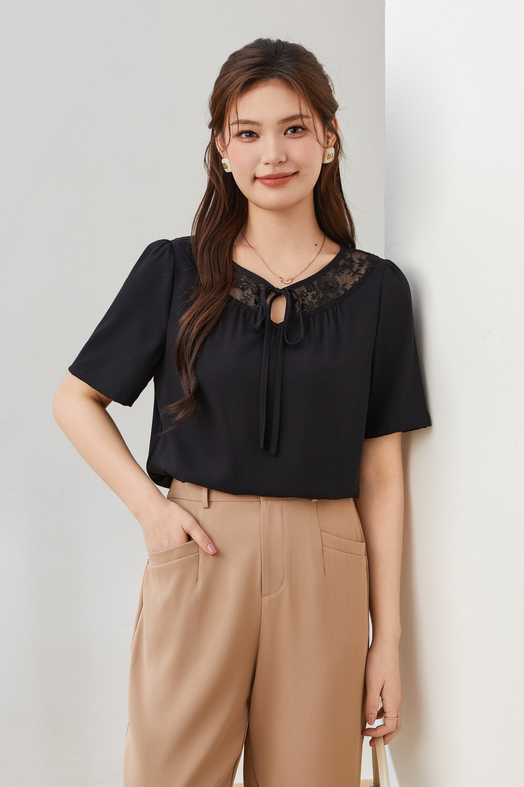Puff Sleeve Lace Stitching Elegant Small Shirt Exa2685
