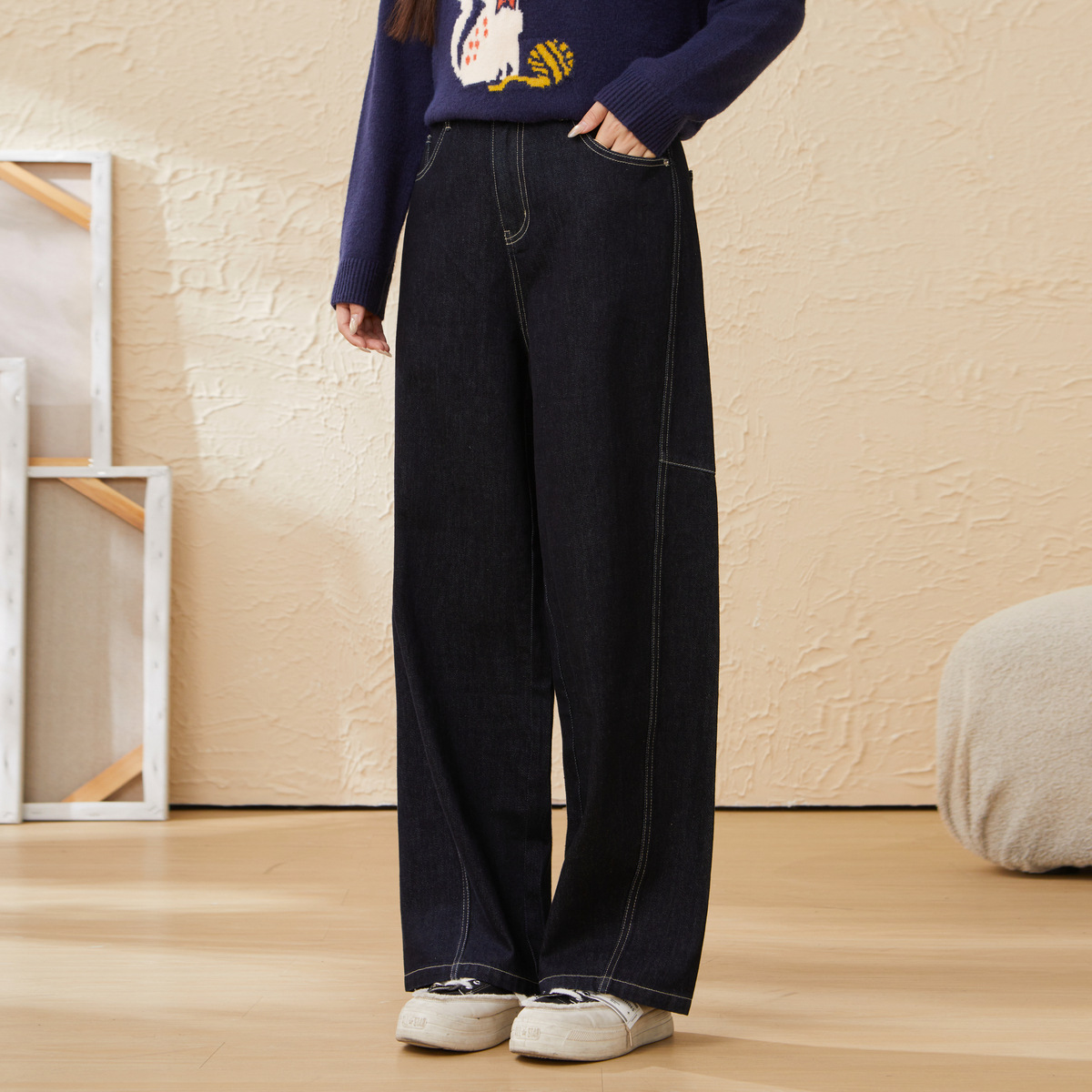 retro High Waist Slim Denim Trousers EDK5853