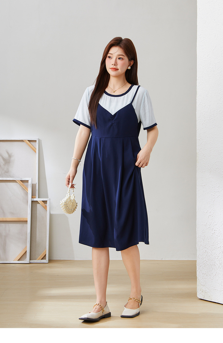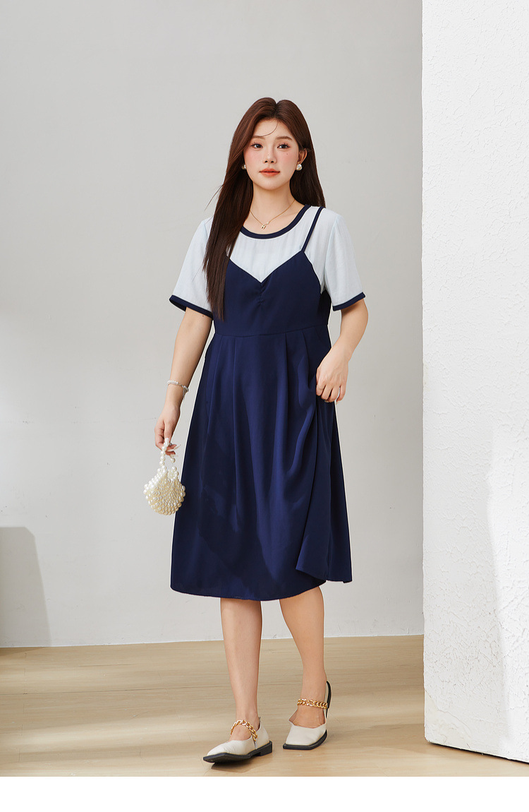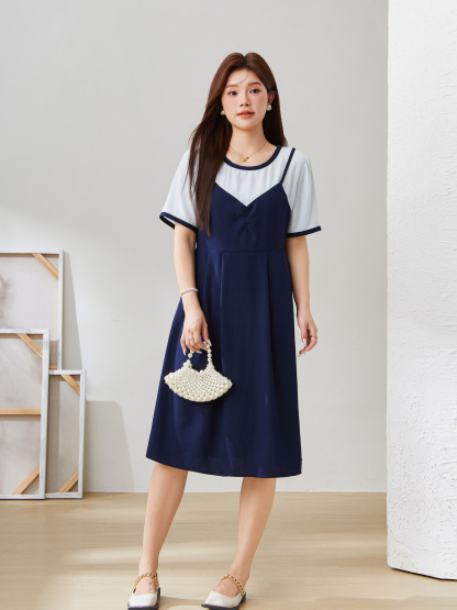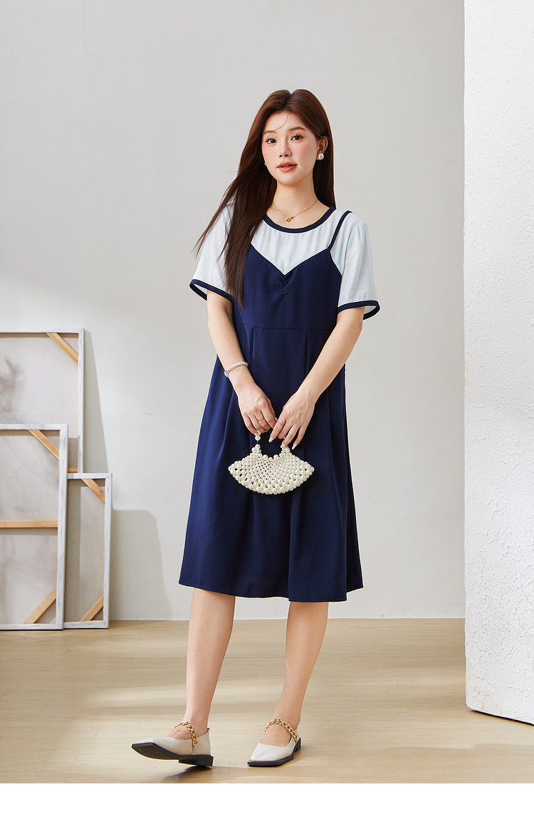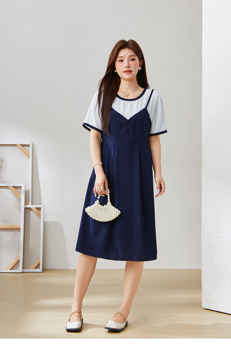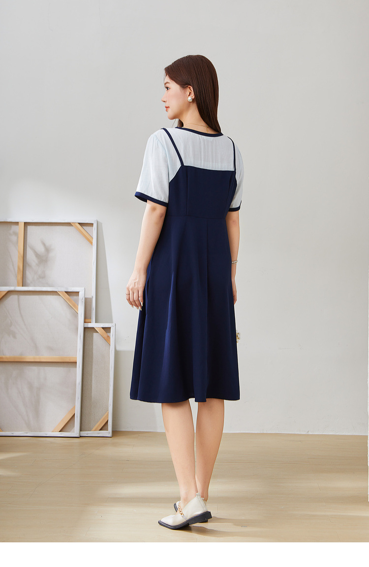 Fake Two-Piece Spliced Waist-Cinching Dress EXQ5507