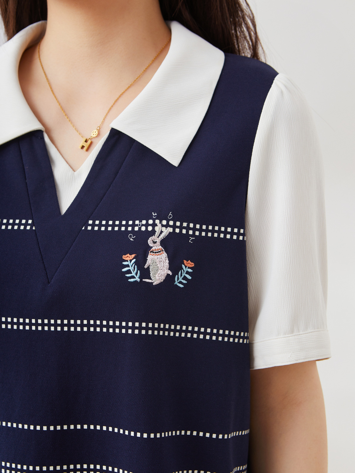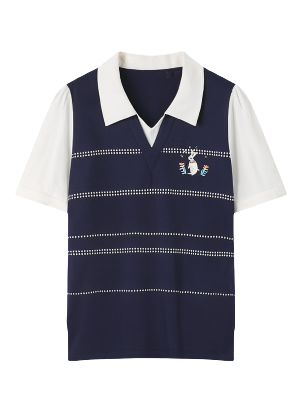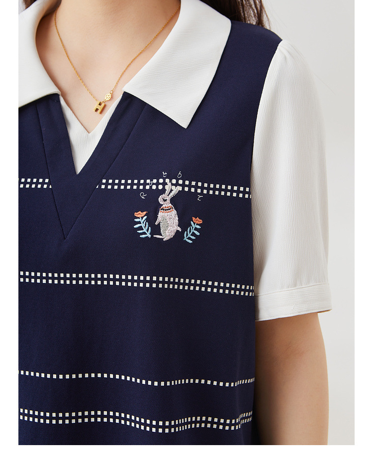 Preppy Style Embroidered Patchwork Color-Block Top EXZ2683