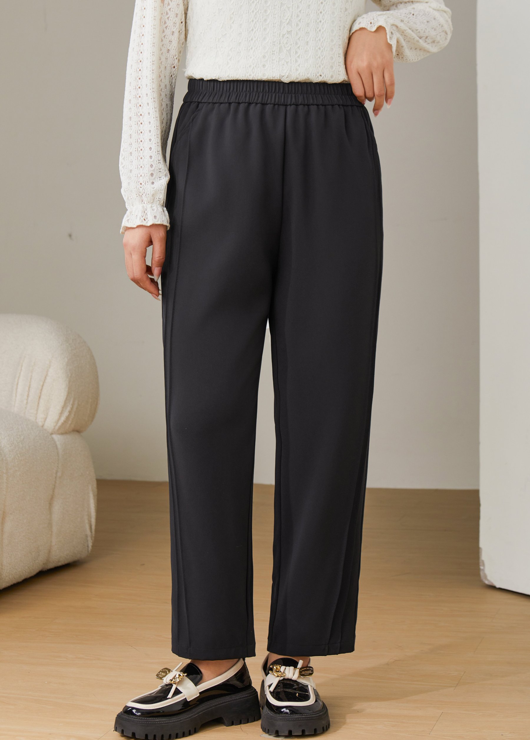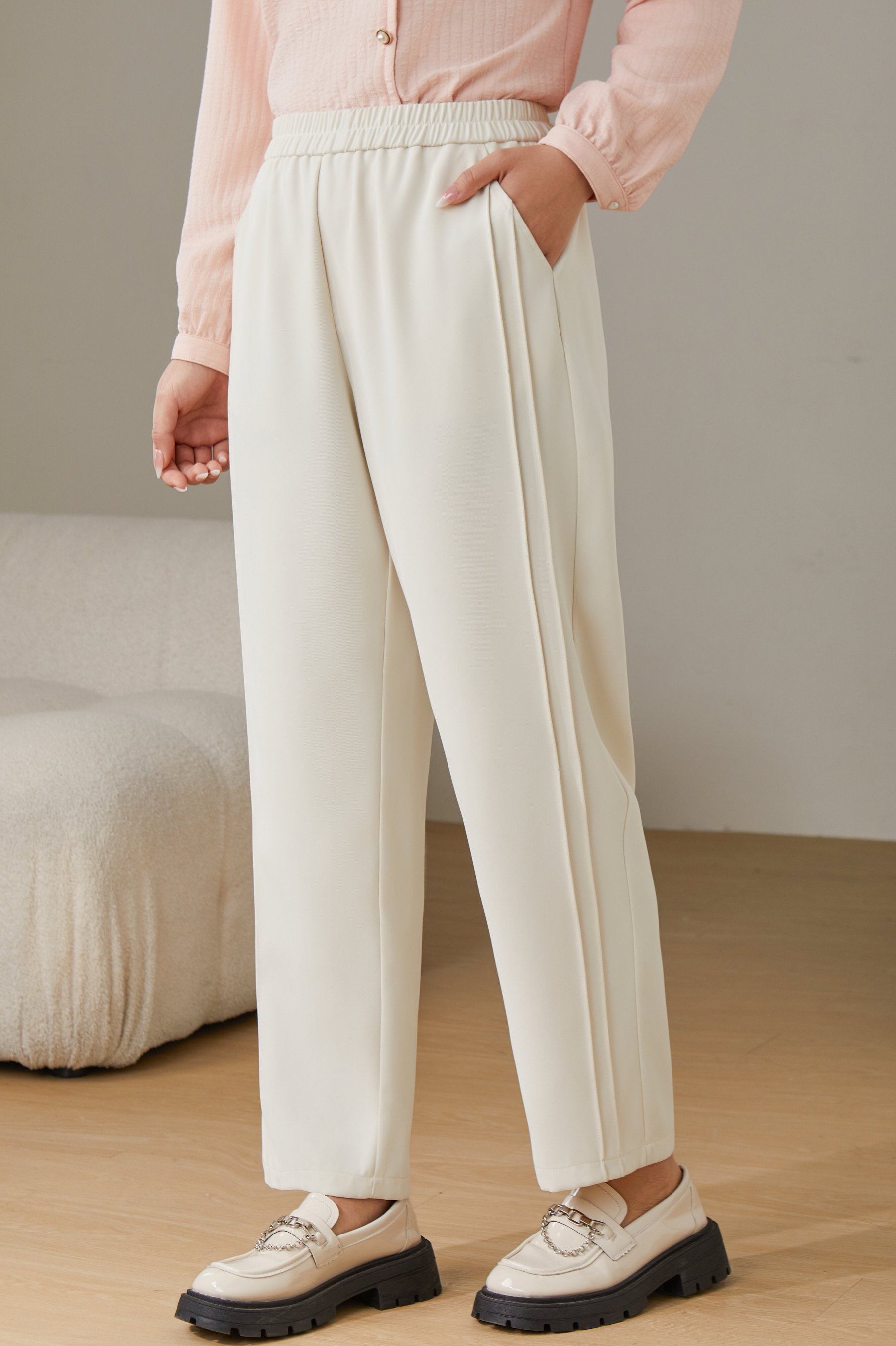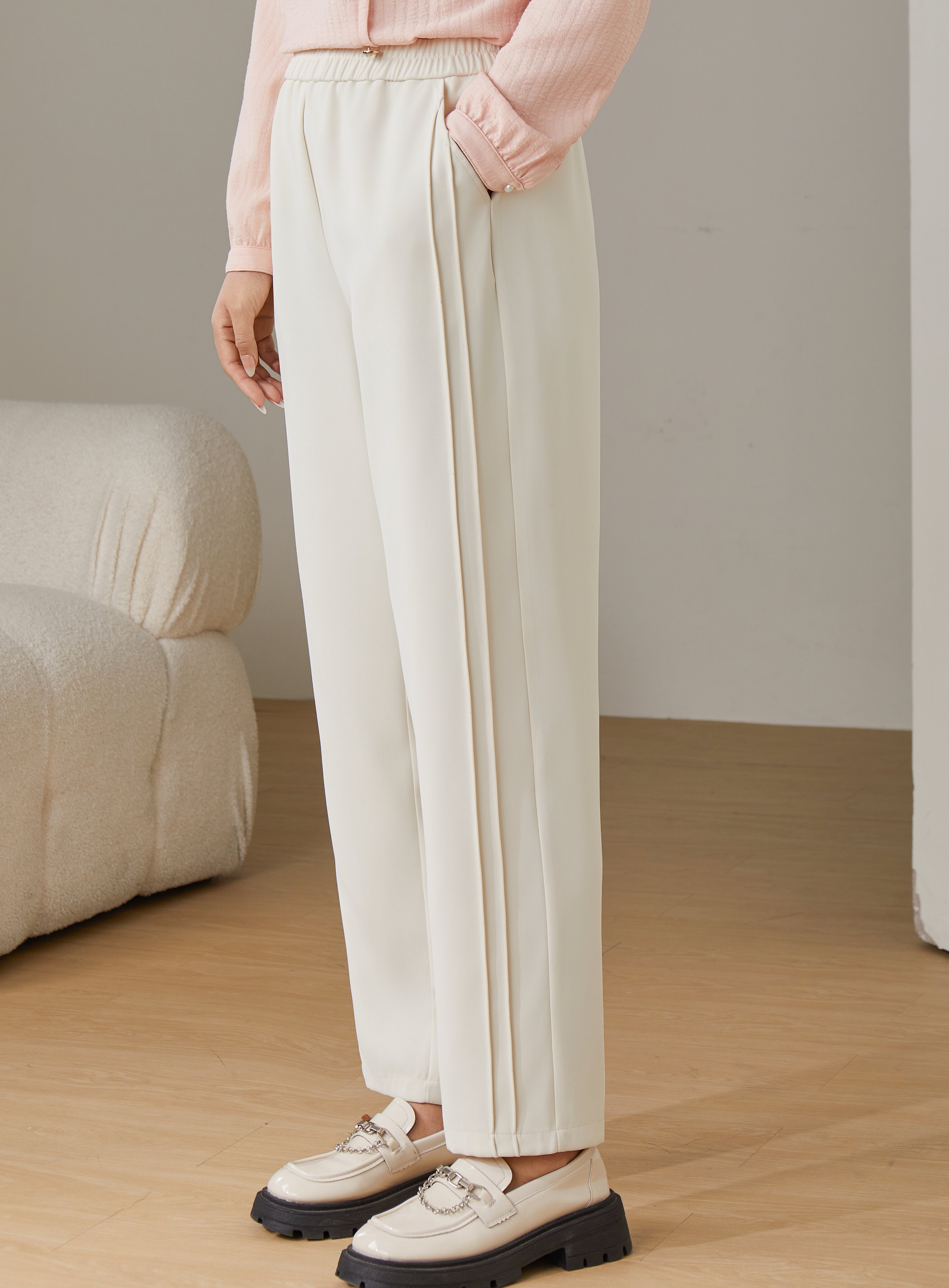 Solid Color High Waist Draped Pants ECK2392