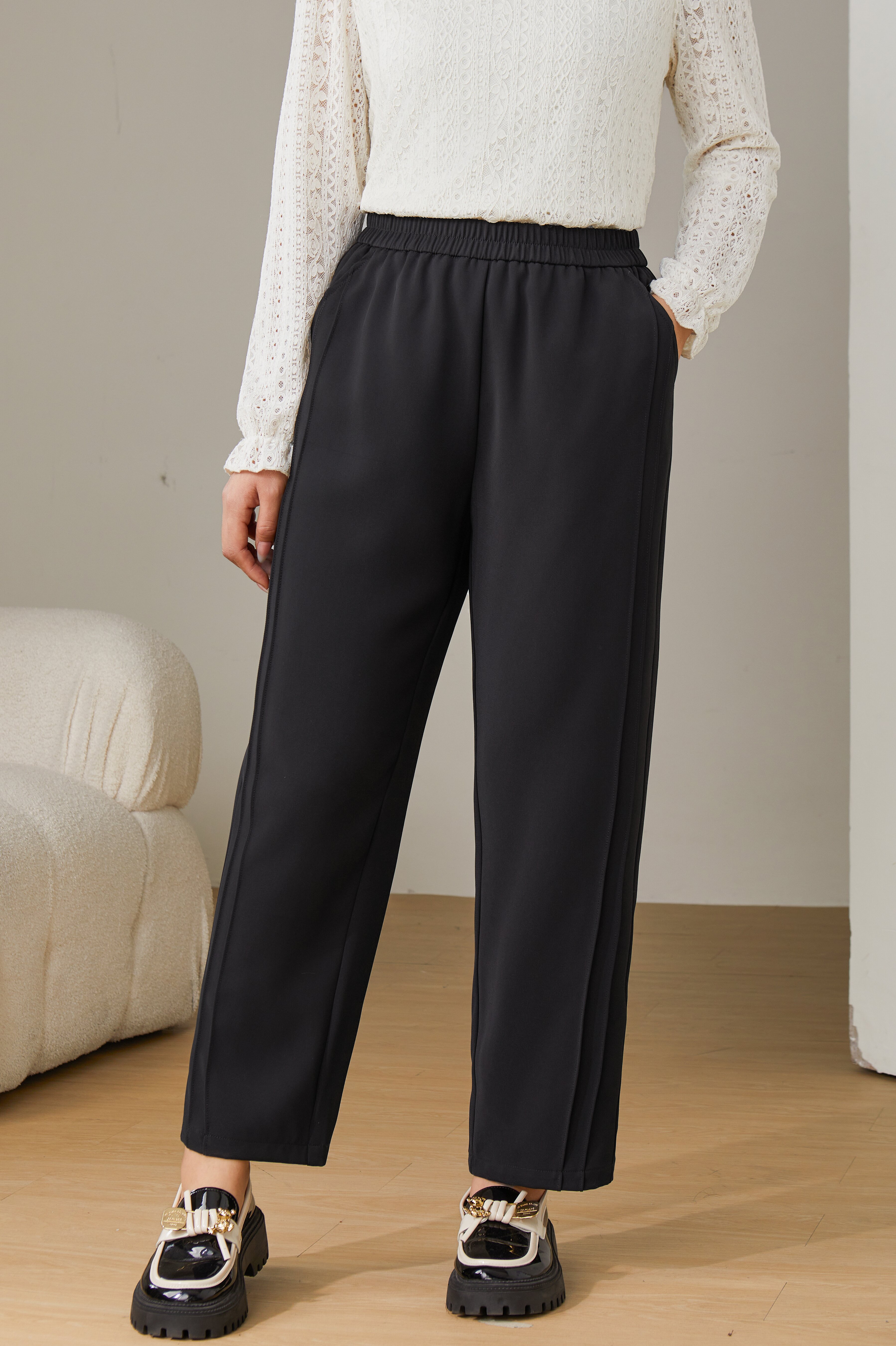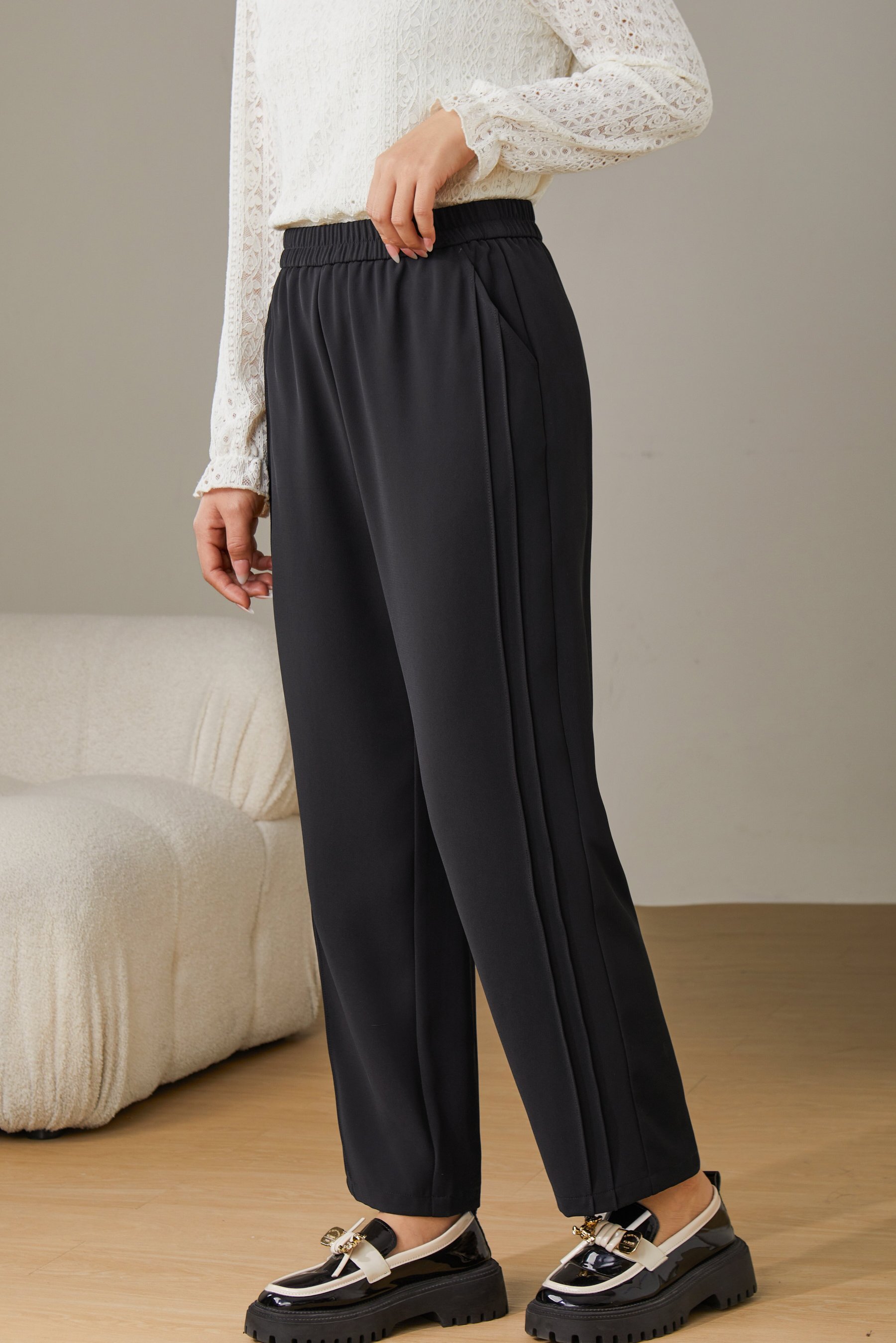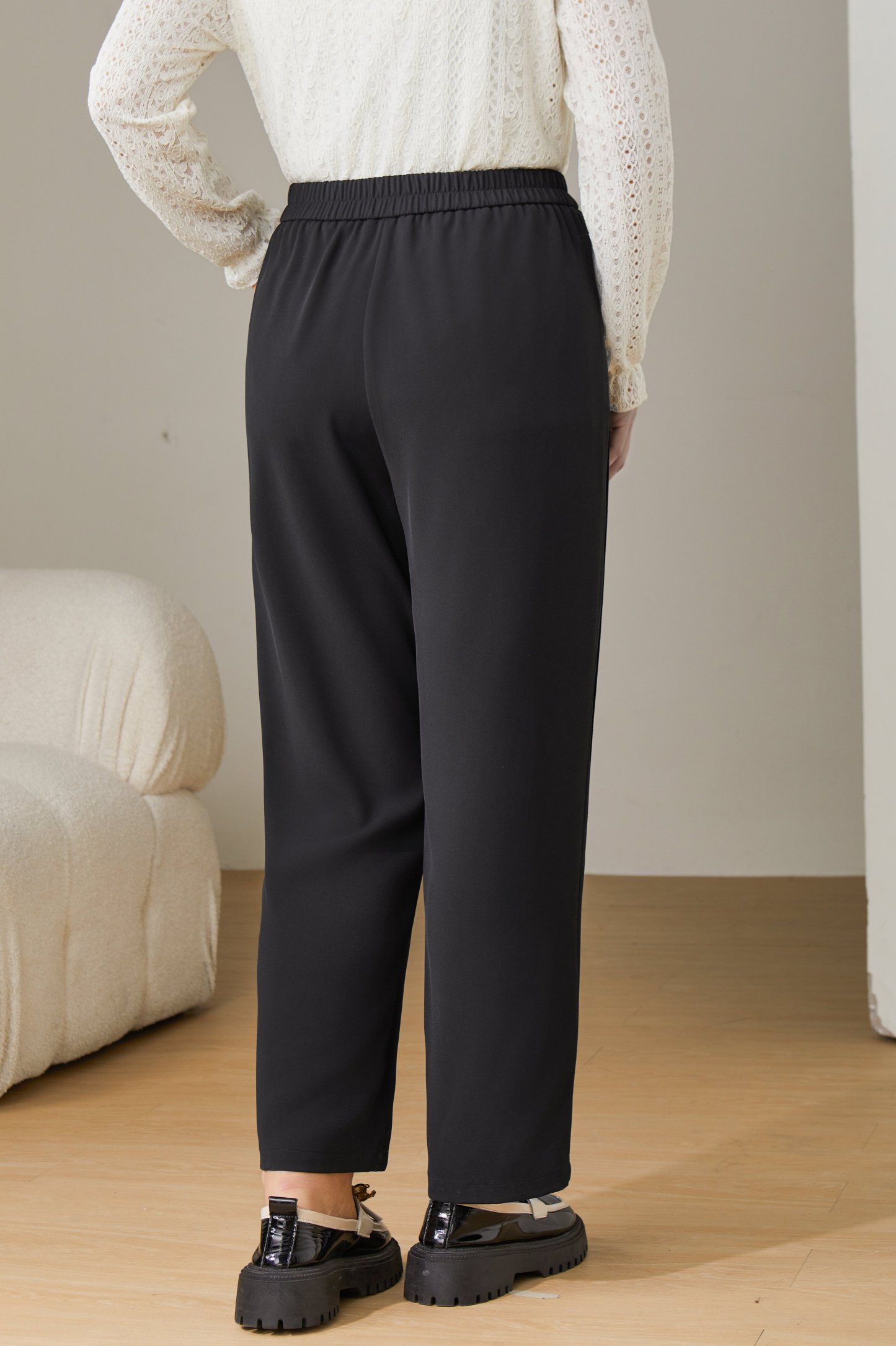 Solid Color High Waist Draped Pants ECK2392