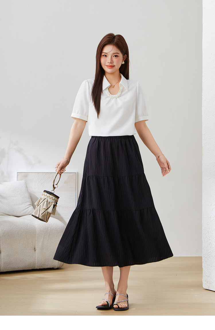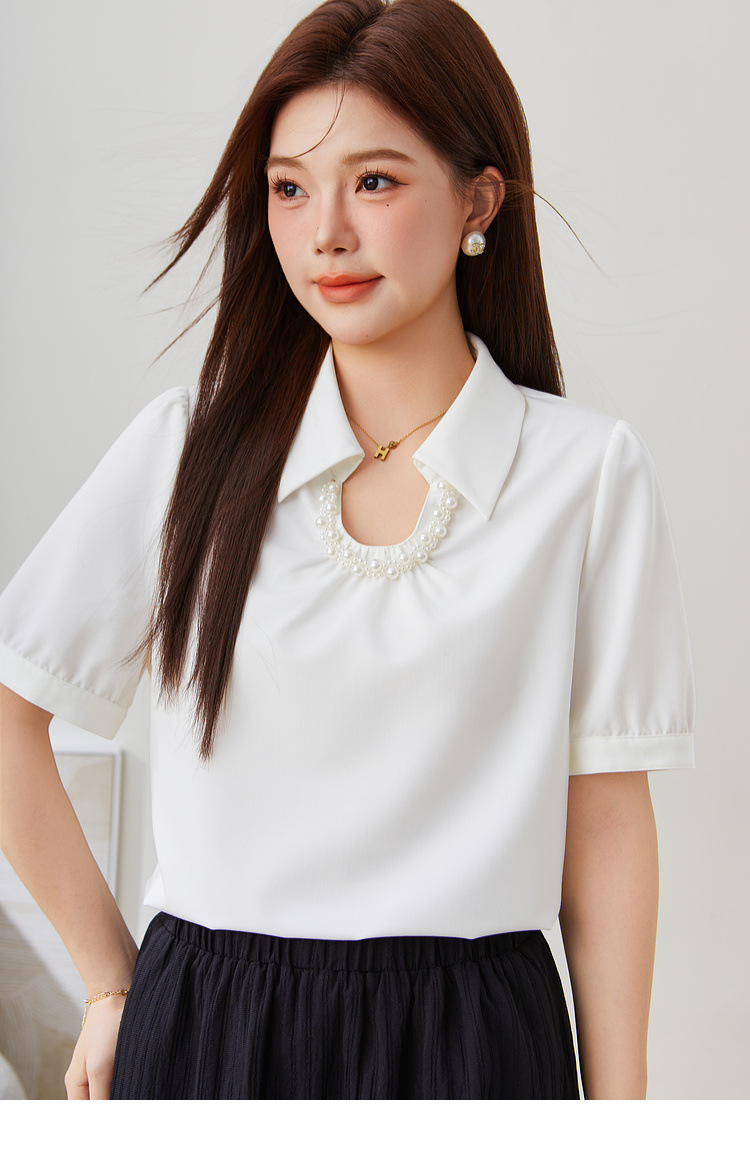 Solid Color Pearl Decorated Top EXA5222