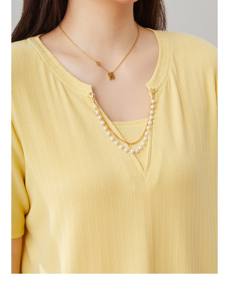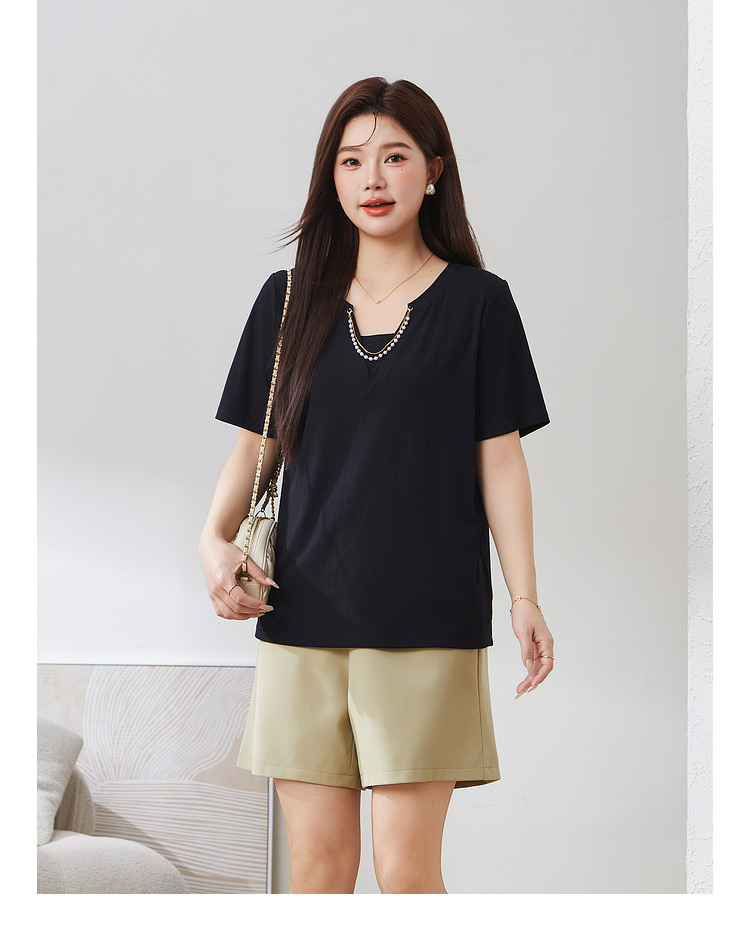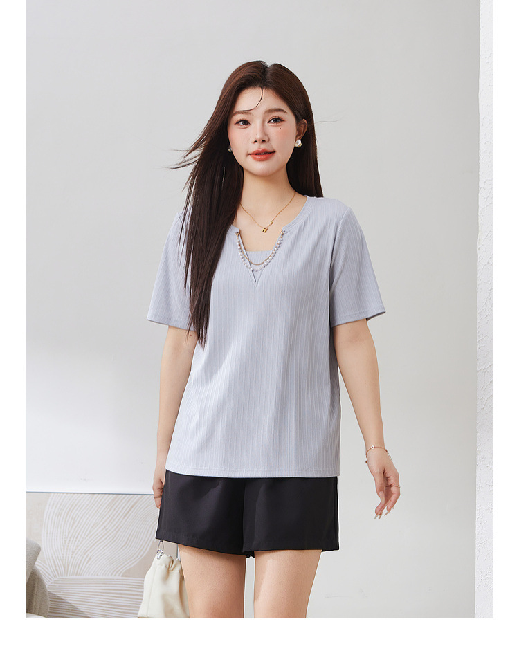 V-neck Metal Chain Decorated Top EXZ5029N