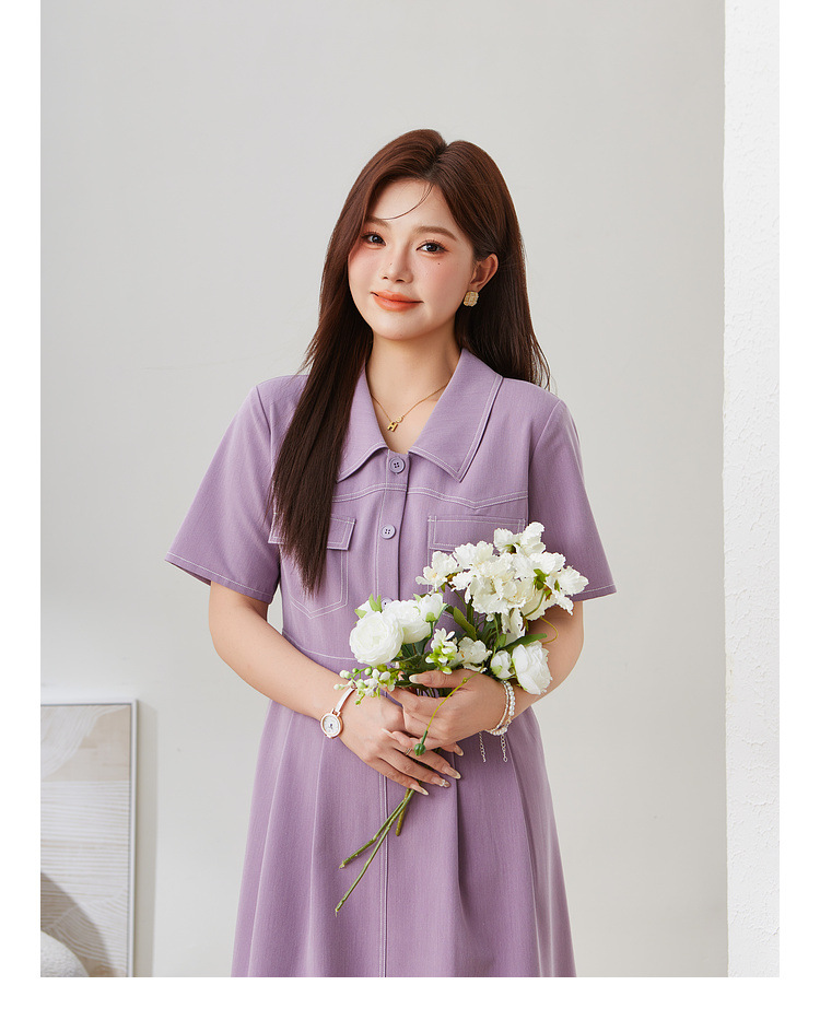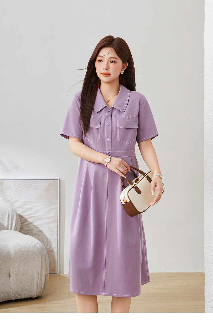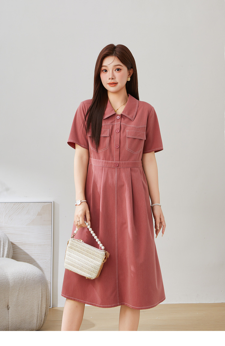 Vintage Turn-Down Collar Waist-Cinching Elegant Dress EXQ5331