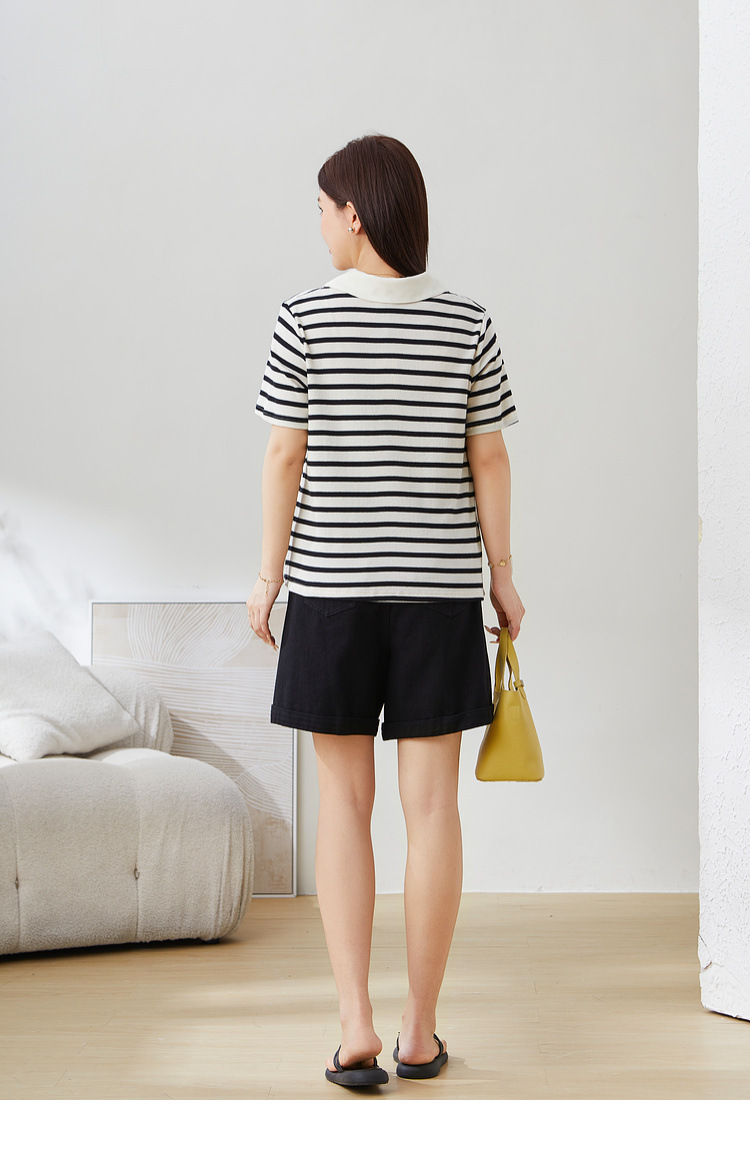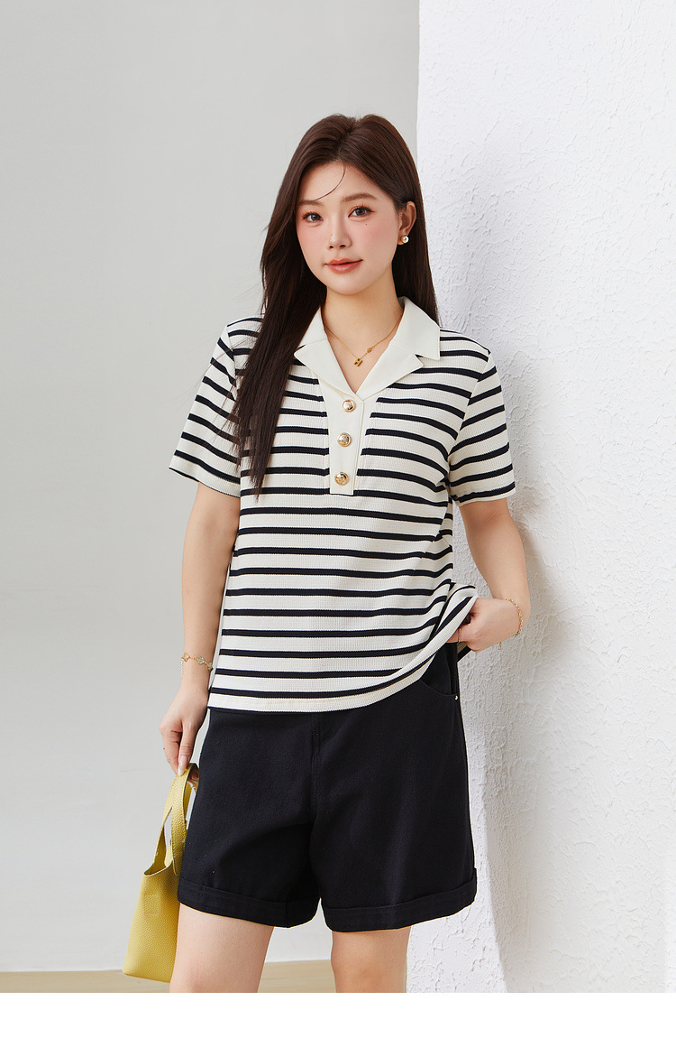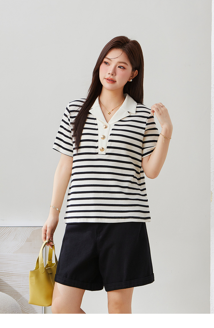 Waffle Stripe Patchwork Color Block T-Shirt EXZ5110