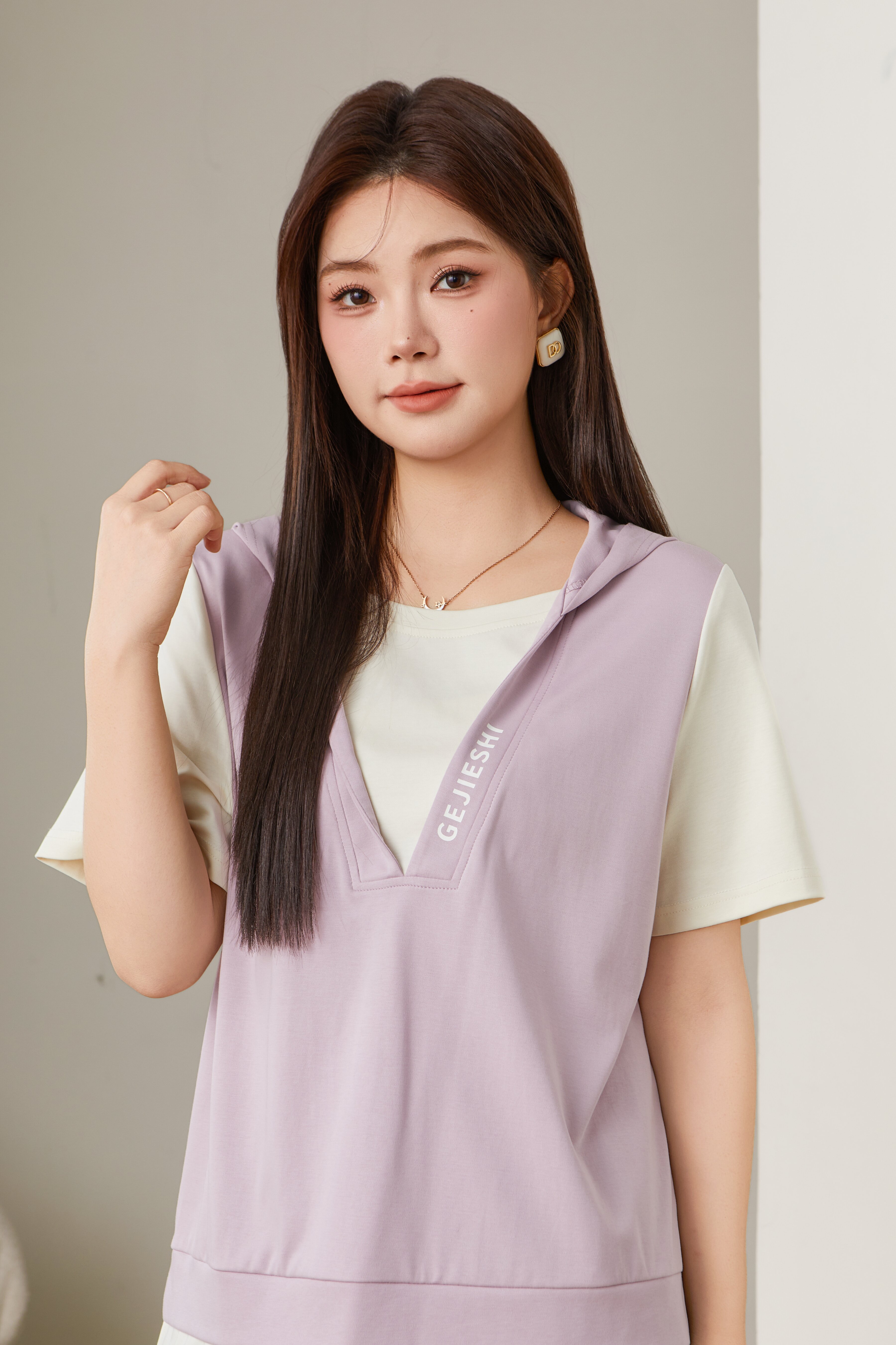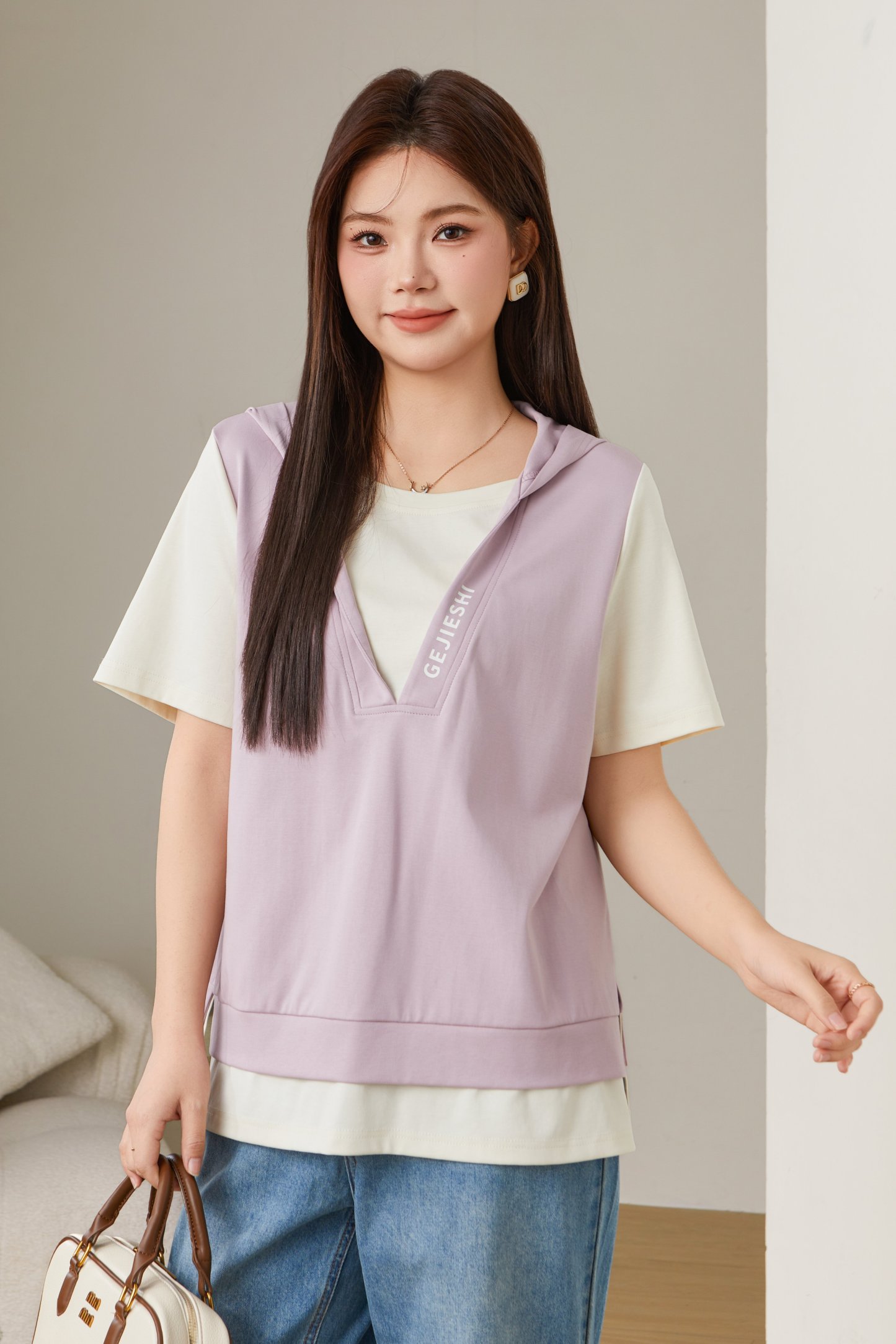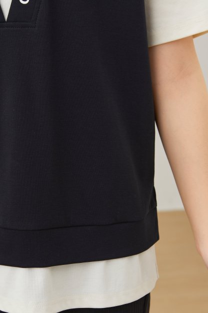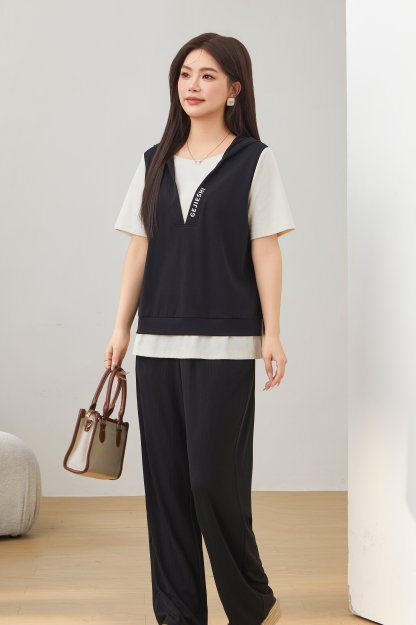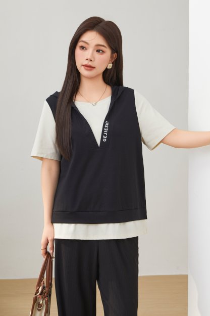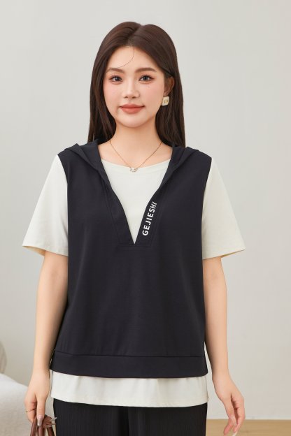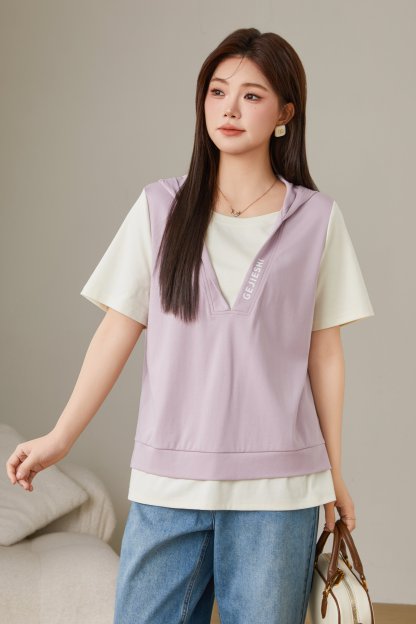 Fake Two-Piece Printed Hooded Casual T-Shirt EXZ2675