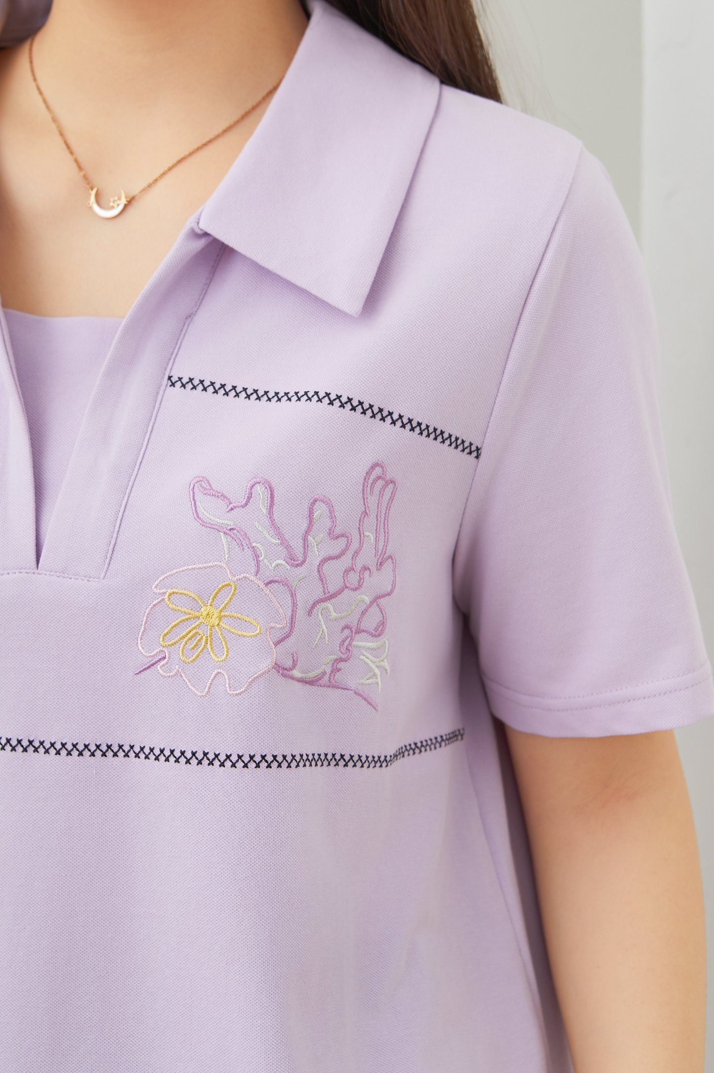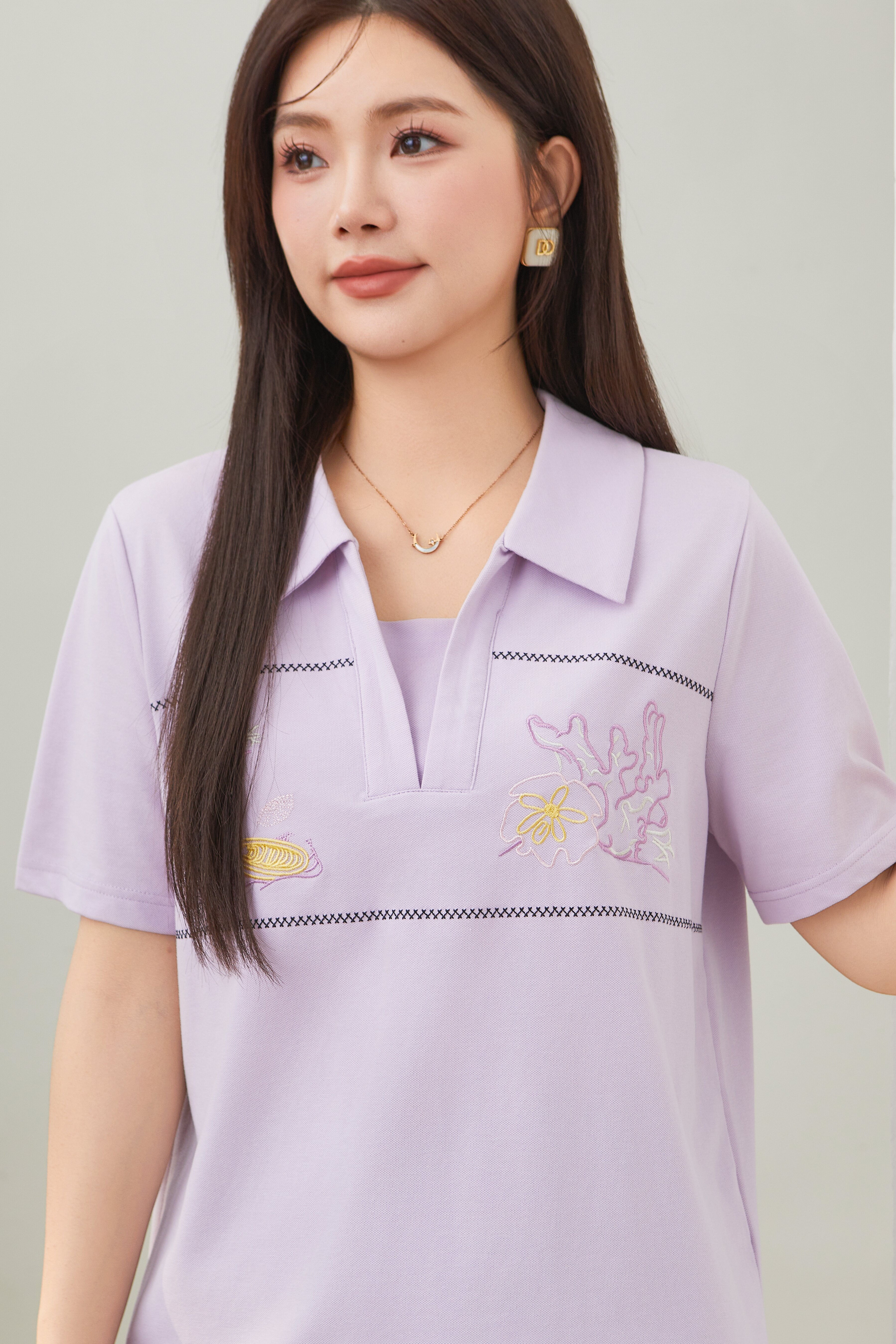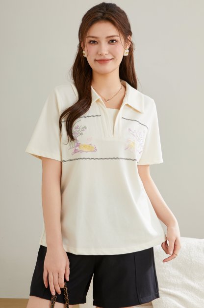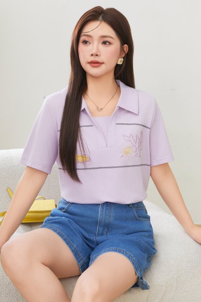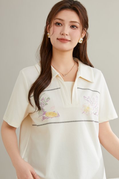 Turn-down Collar Pique Knit T-shirt DXZ1726
