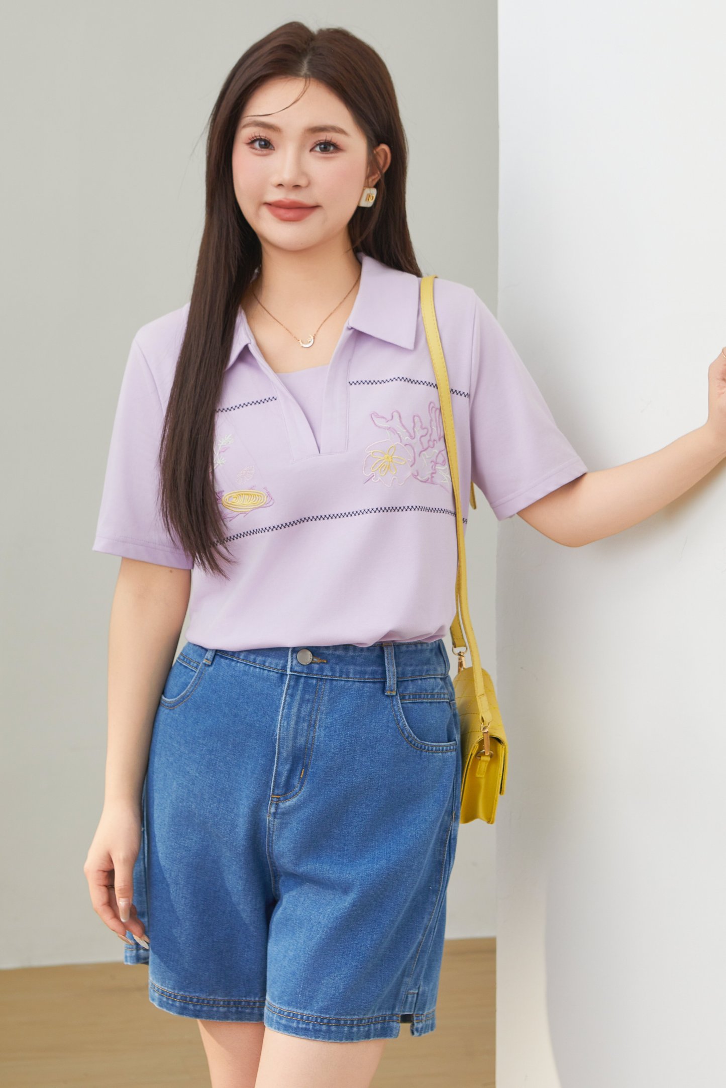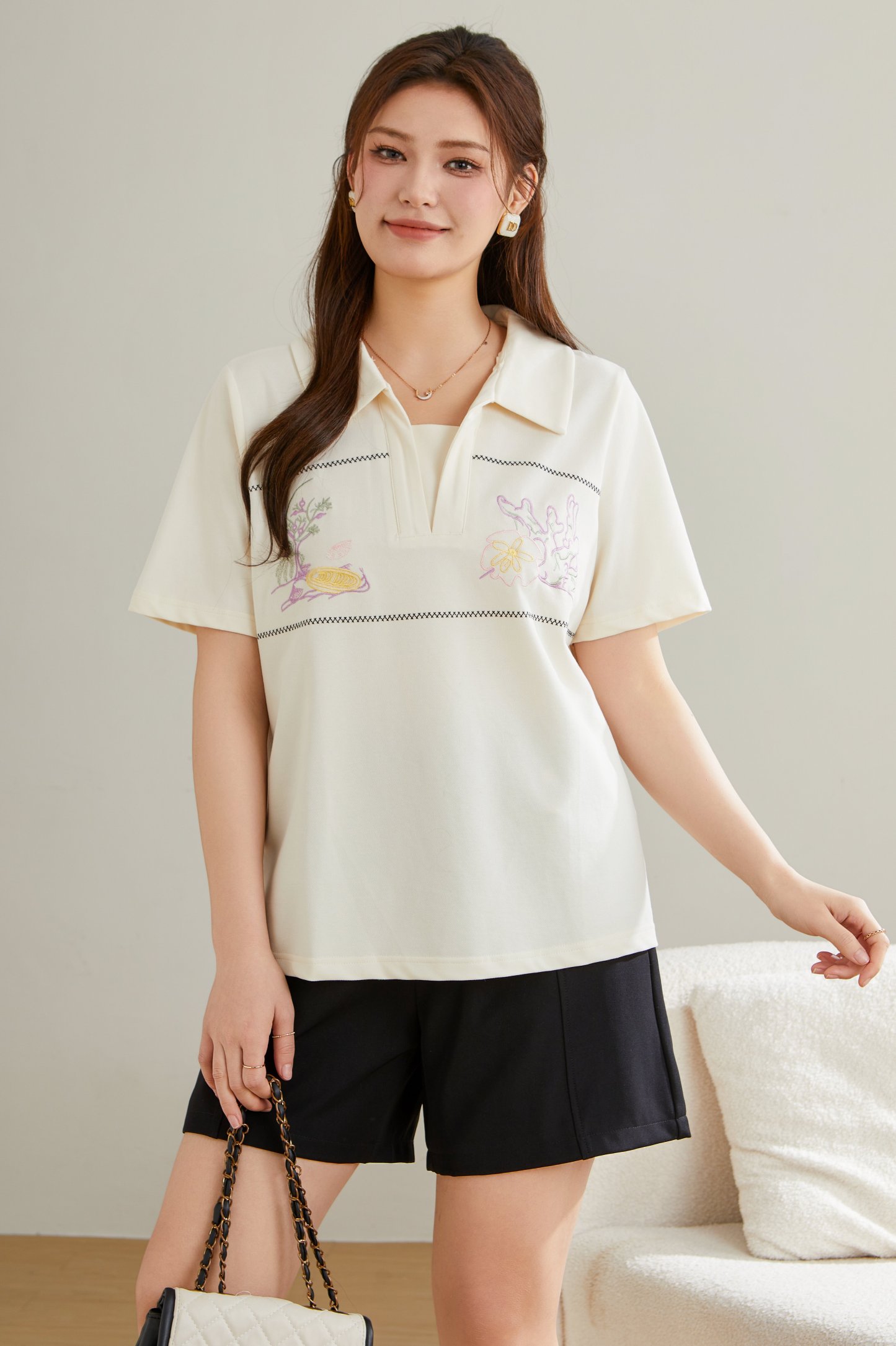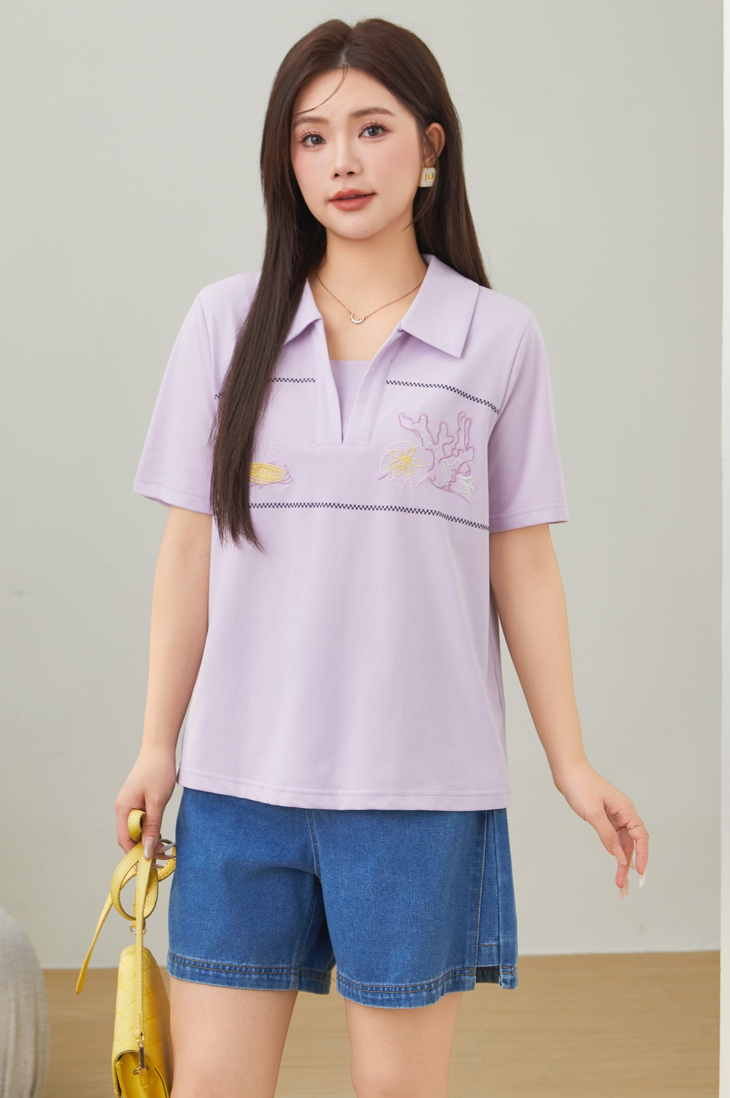 Turn-down Collar Pique Knit T-shirt DXZ1726