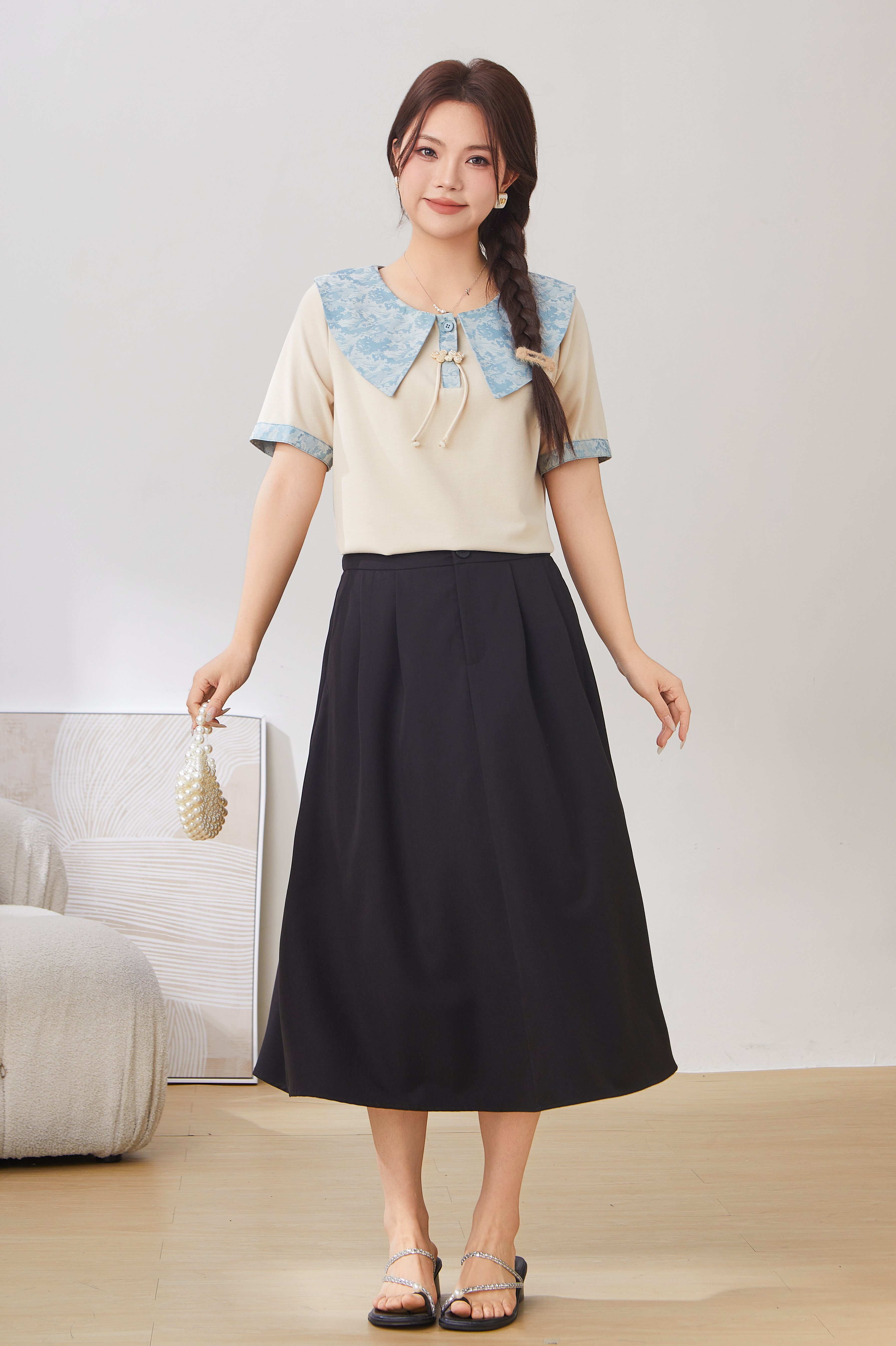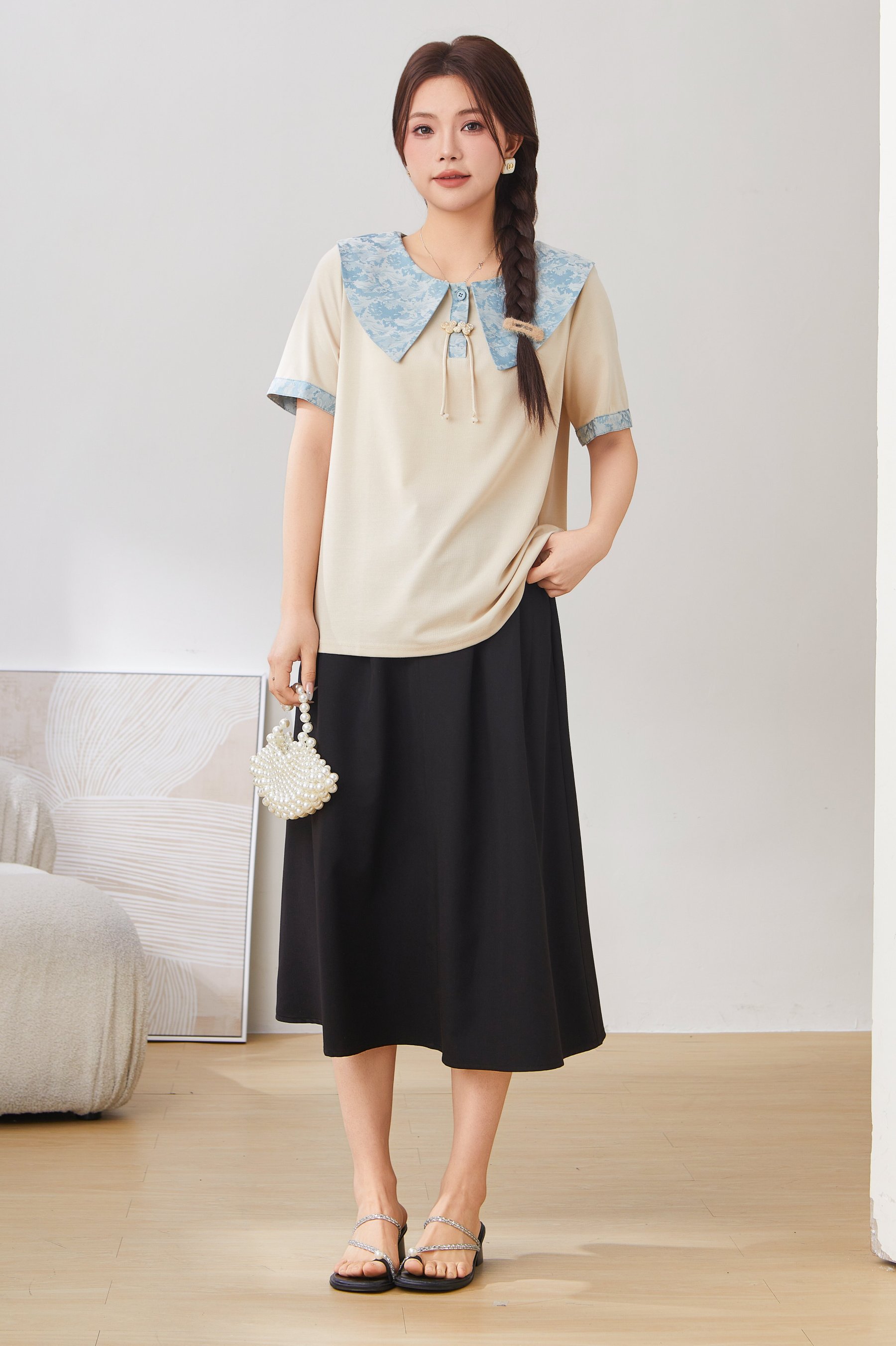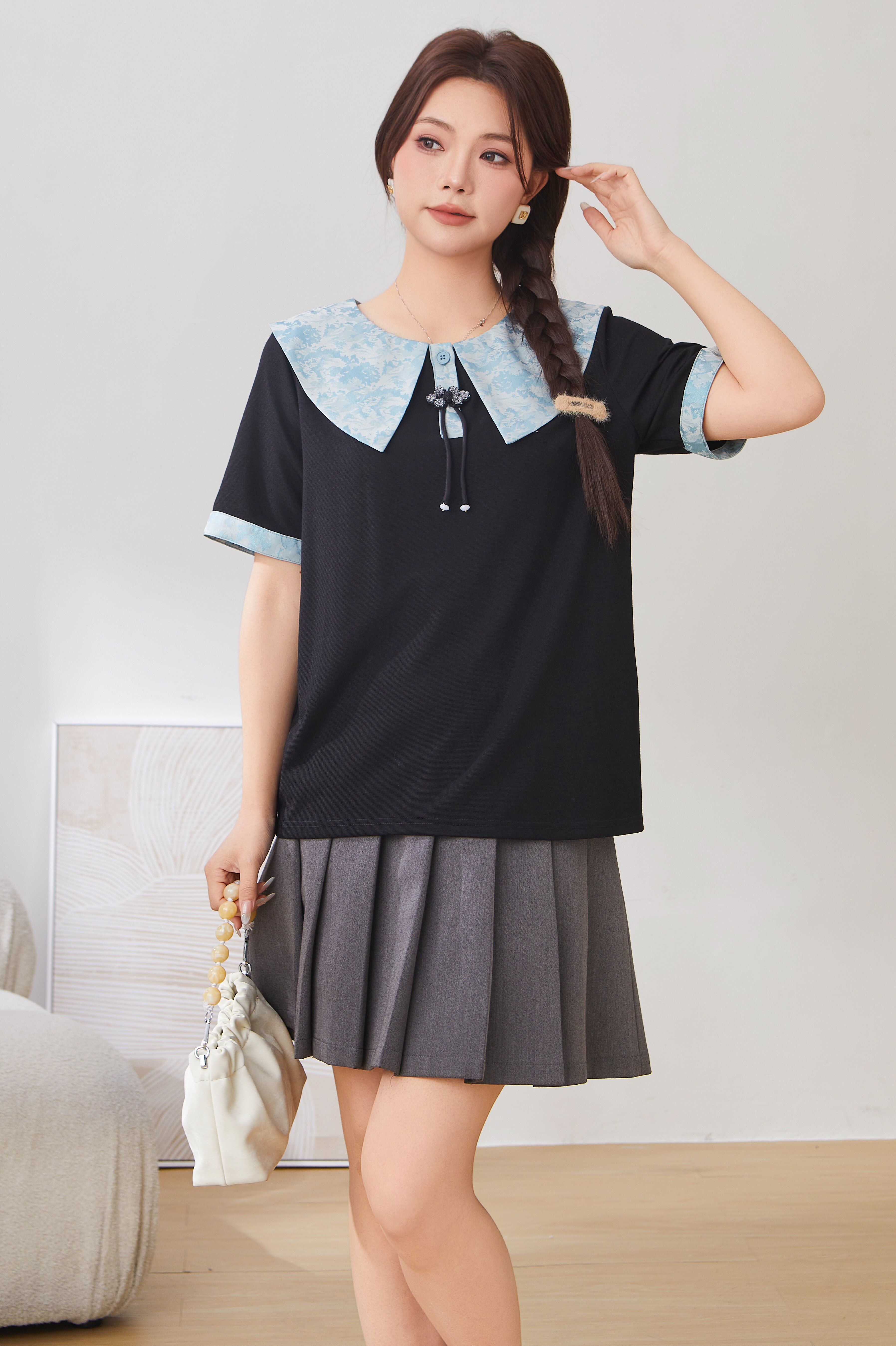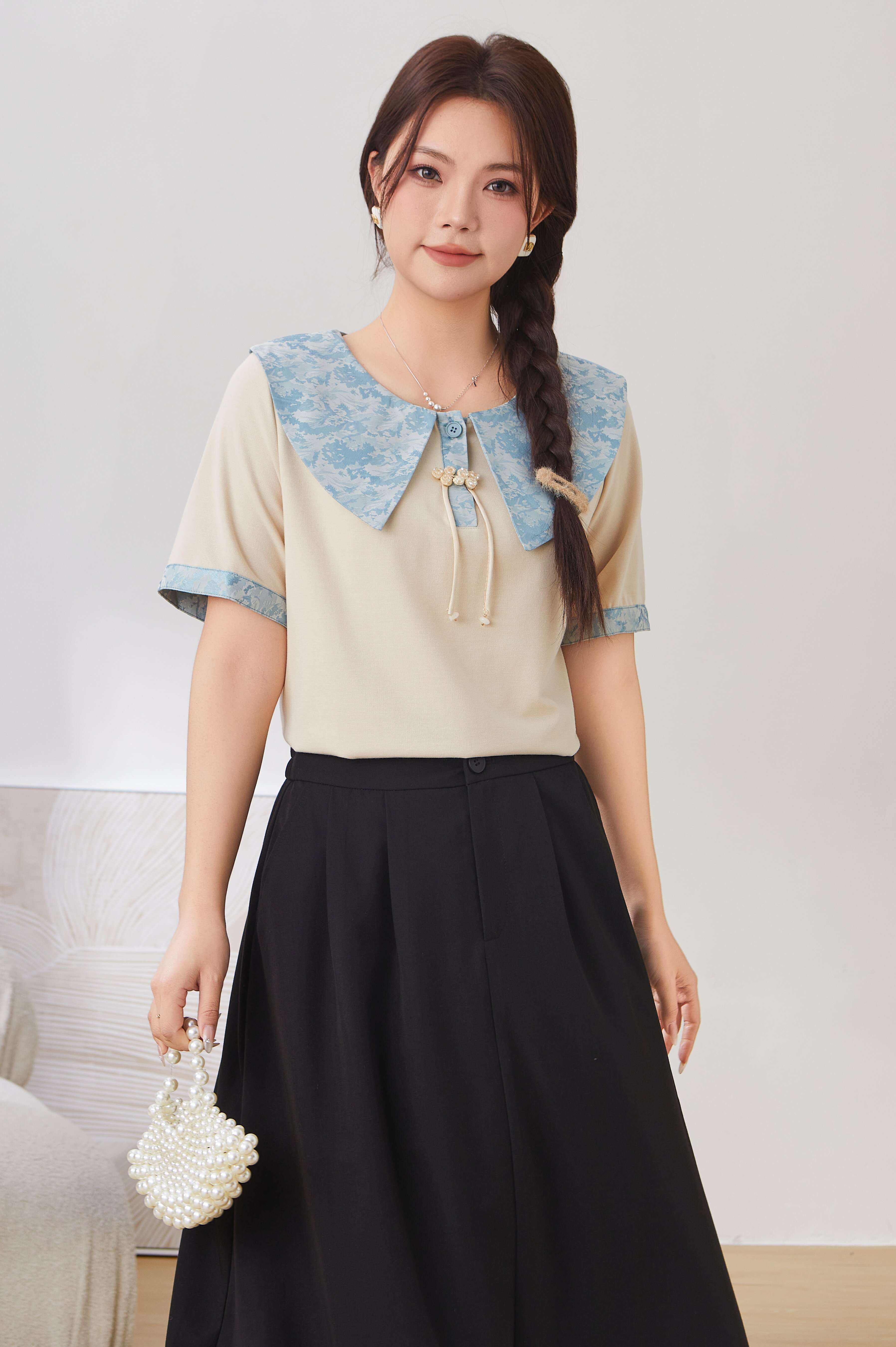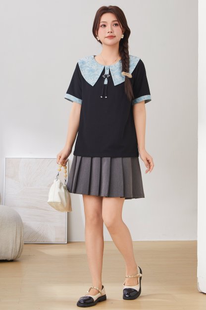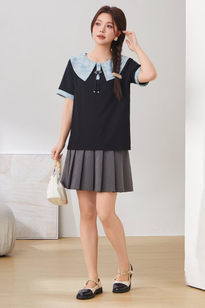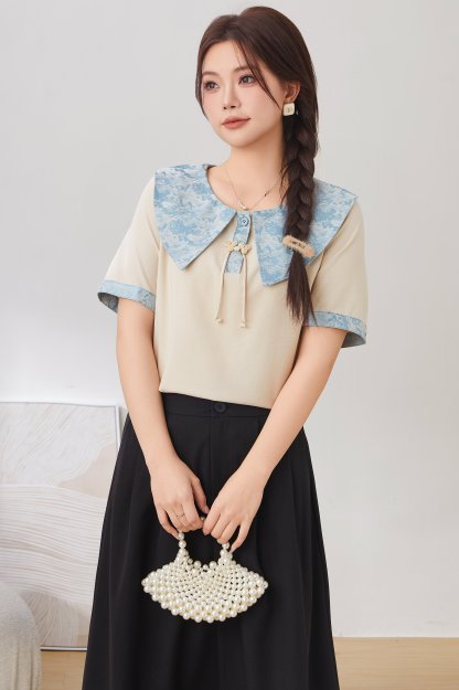Baby Doll Collar Tassel Button T-Shirt Top DXZ1651
