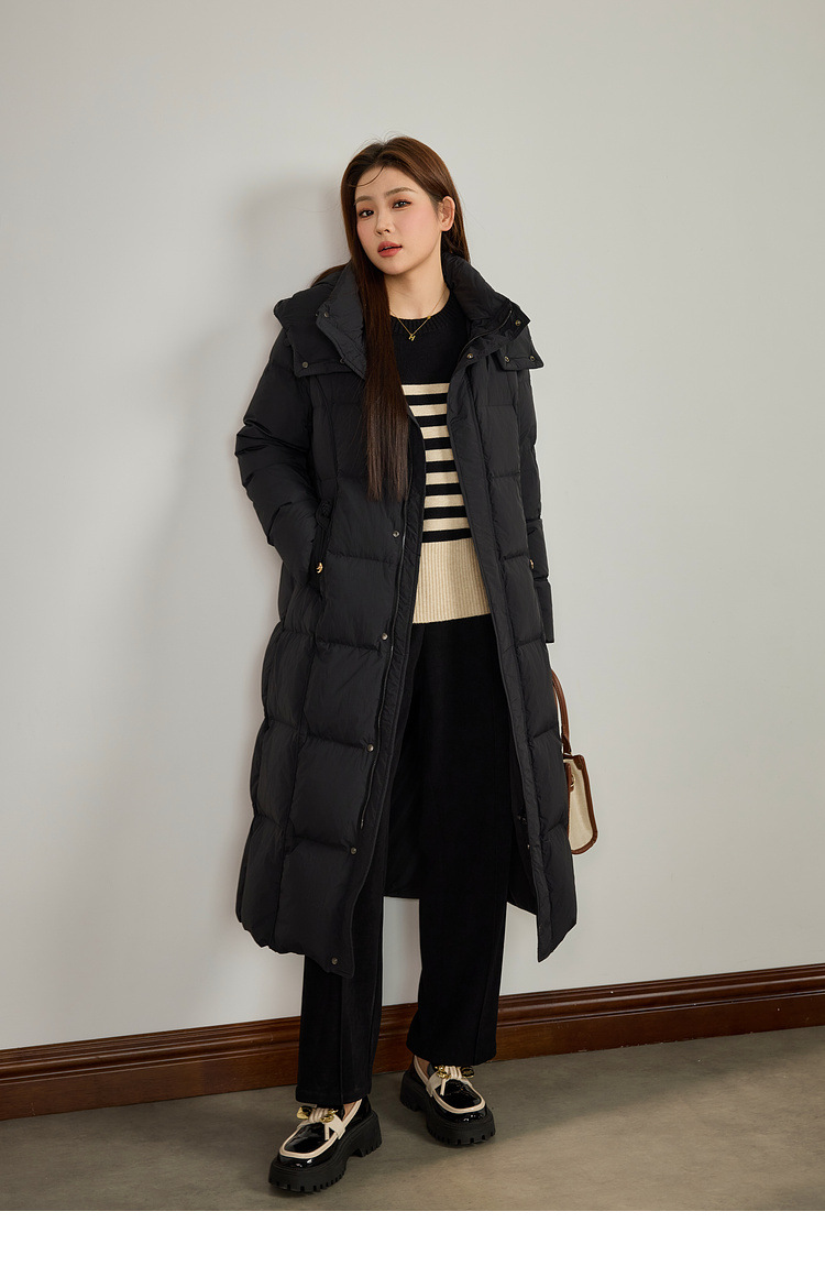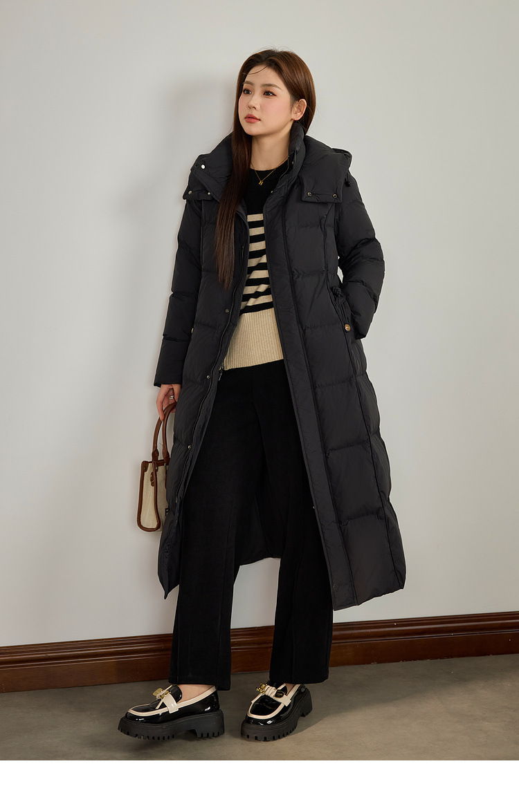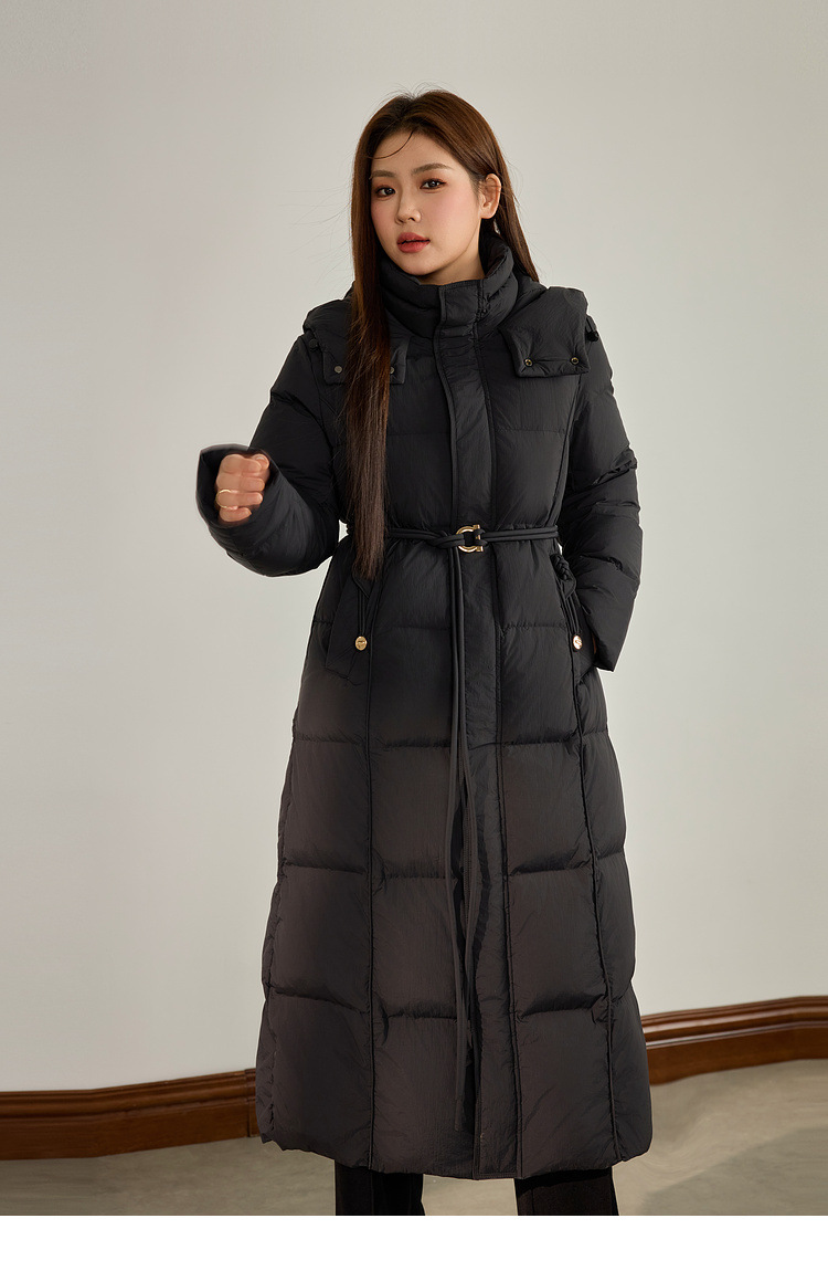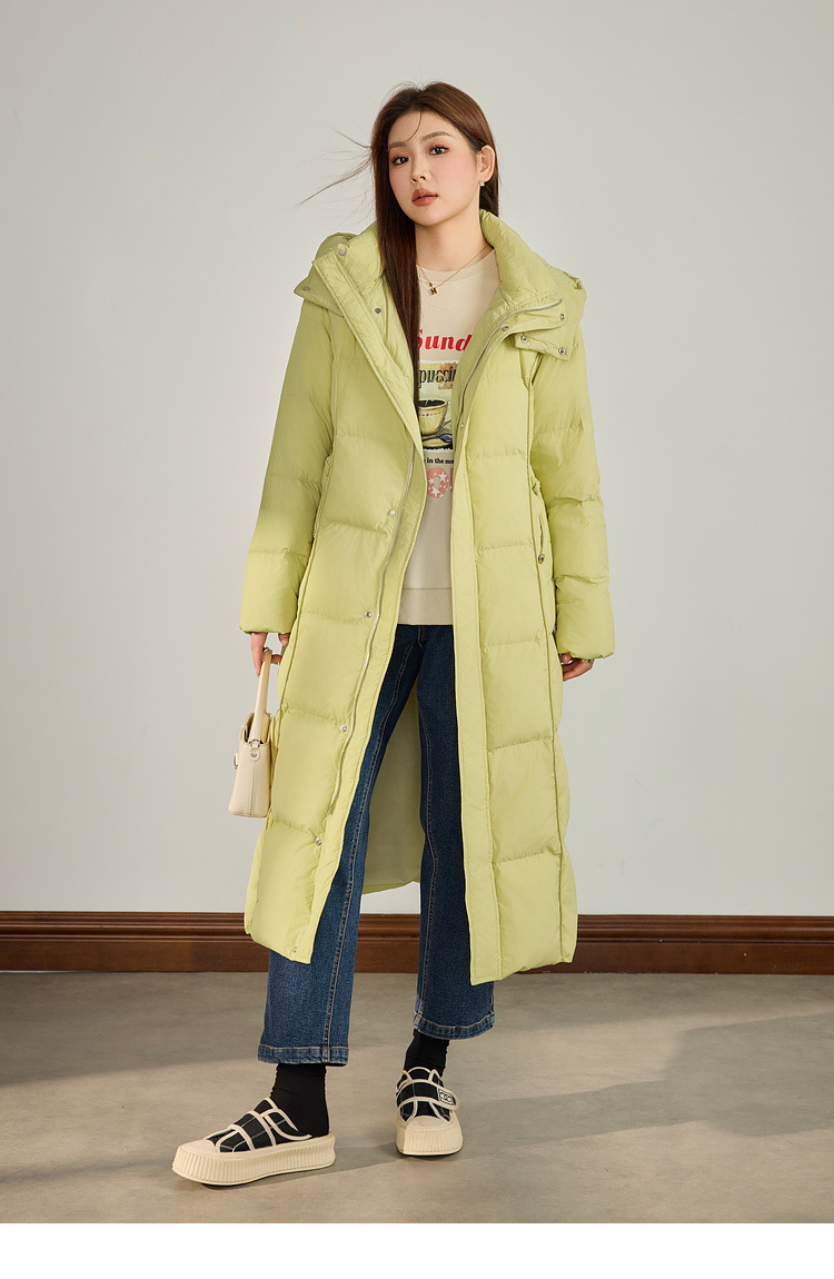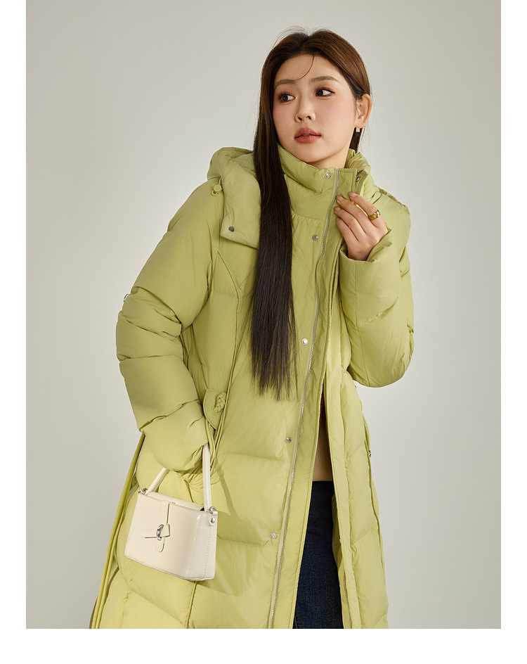 Long Hooded Lace-up Long Down Jacket DDY1819